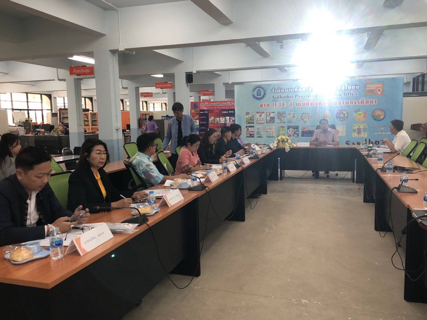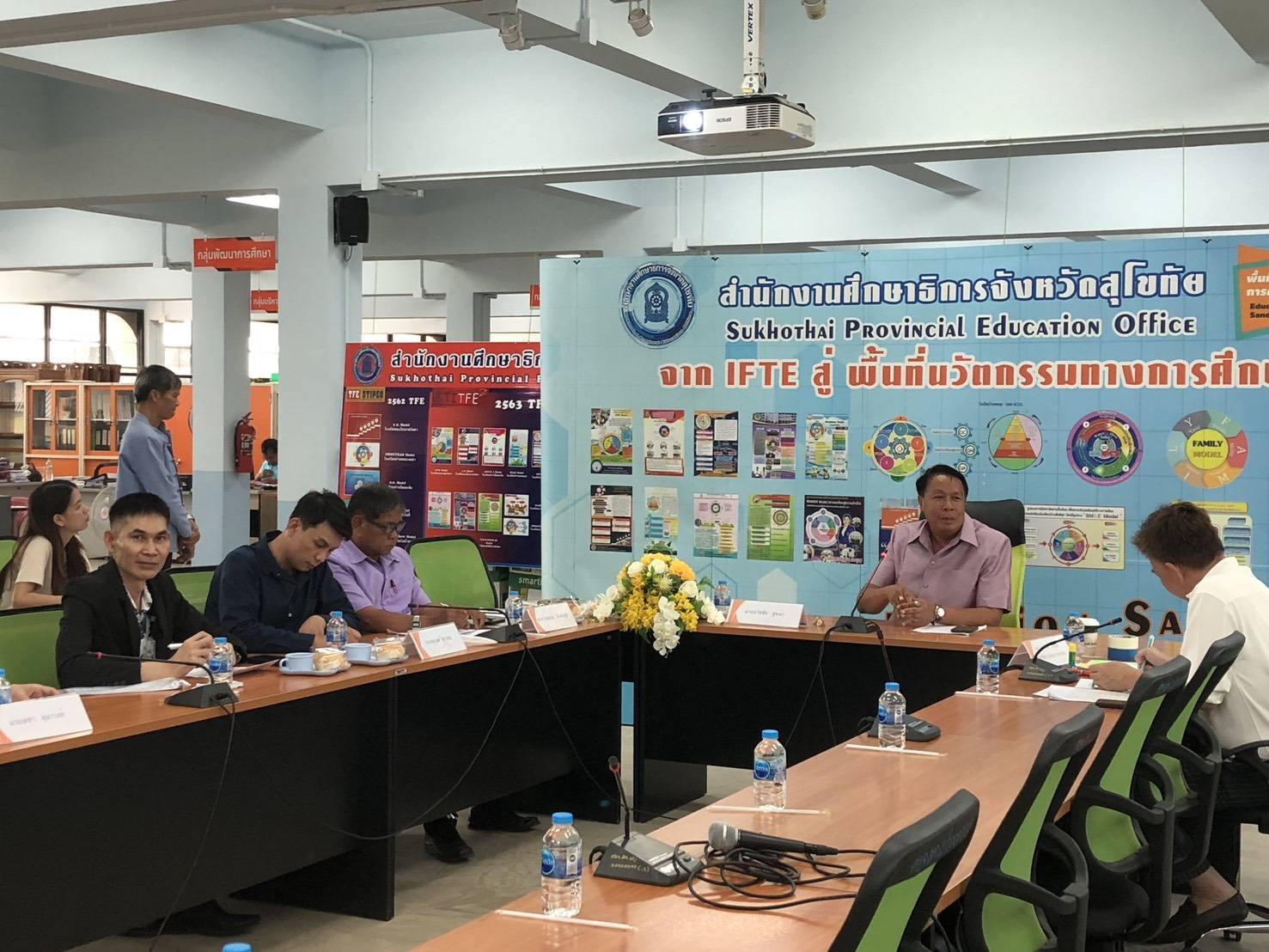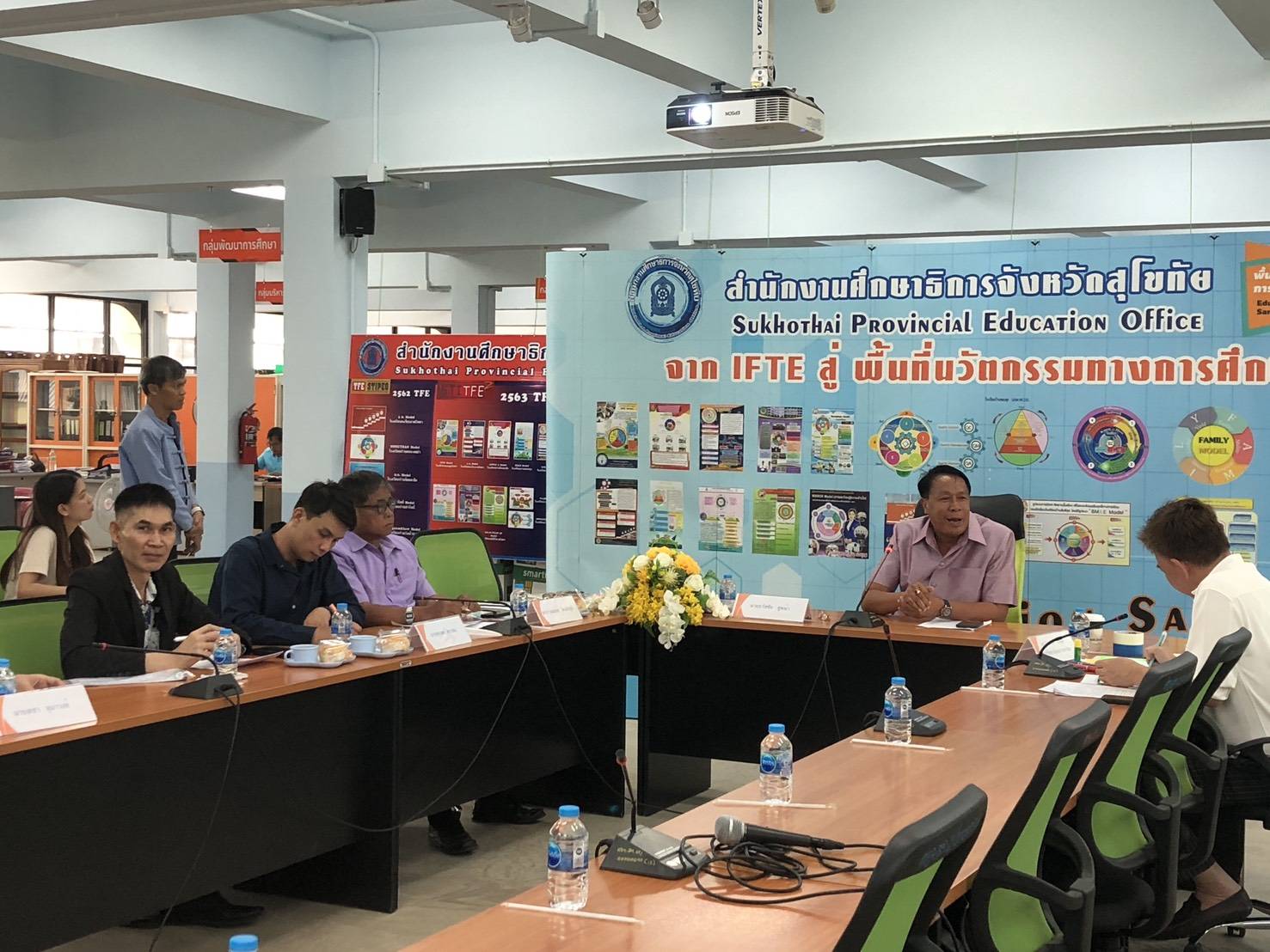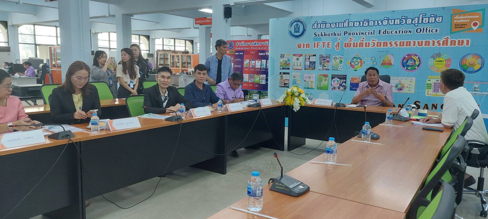 ณ สำนักงานศึกษาธิการจังหวัดสุโขทัย เพื่อสนับสนุนและแลกเปลี่ยนแนวทางการดำเนินงานในด้านการพัฒนานวัตกรรมการศึกษาในระดับพื้นที่อย่างมีประสิทธิภาพ (วันที่ 4 เมษายน 2568)