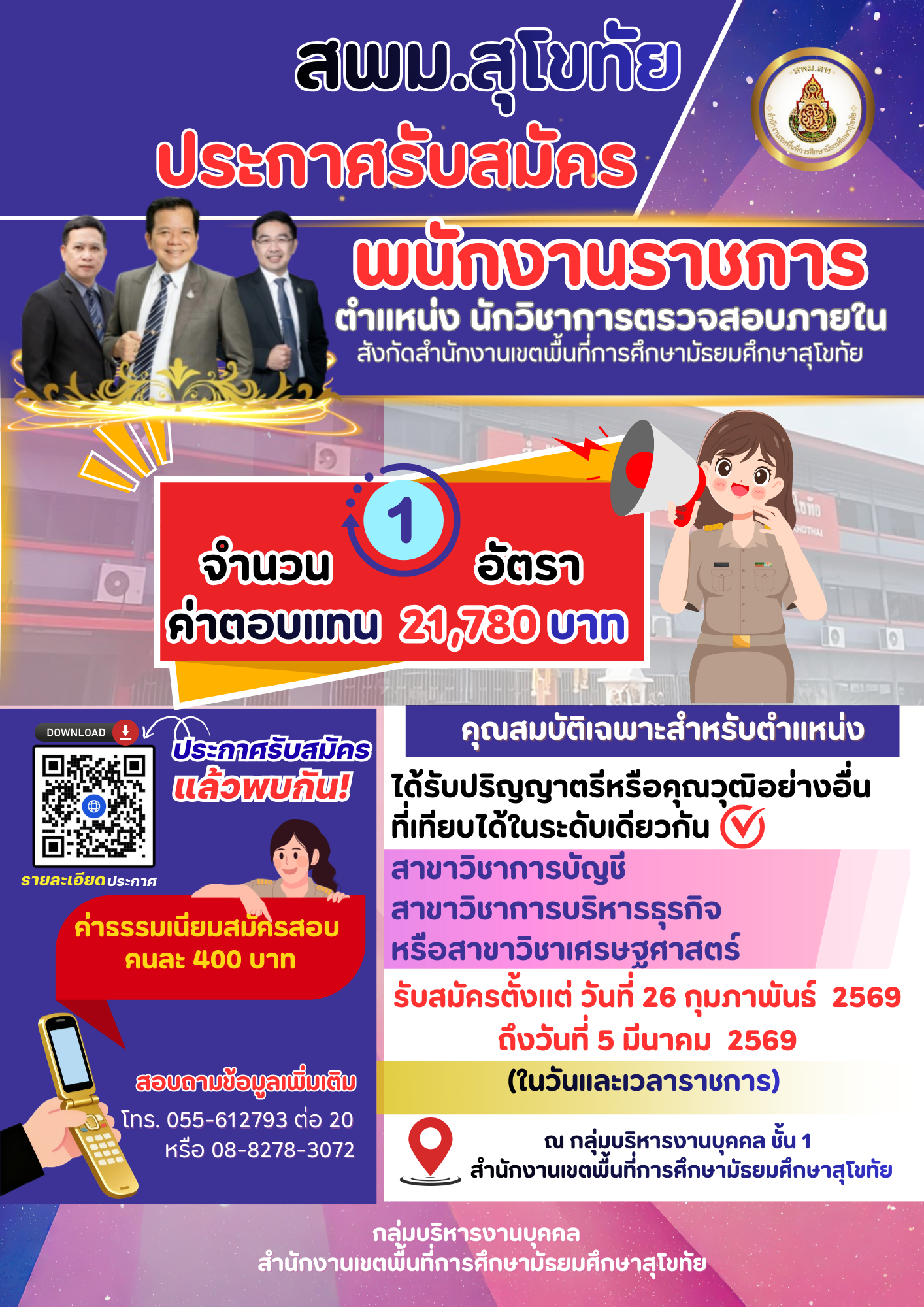 18 ธันวาคม 2568ปฐมนิเทศและแสดงความยินดีผู้สอบแข่งขันได้เพื่อรับการบรรจุและแต่งตั้งเข้ารับราชการเป็นข้าราชการครูและบุคลากรทางการศึกษา ตำแหน่งครูผู้ช่วย