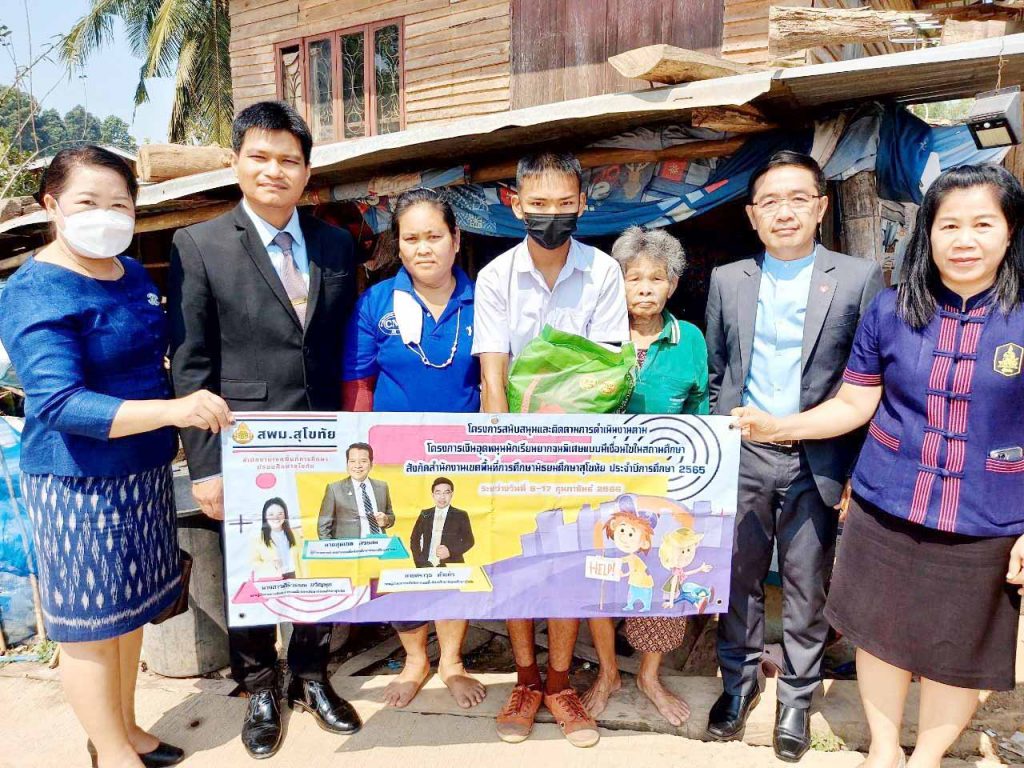 นายสุดเขต สวยสม ผู้อำนวยการสำนักงานเขตพื้นที่การศึกษามัธยมศึกษาสุโขทัย มอบหมายให้ นายศราวุธ คำแก้ว รองผู้อำนวยการสำนักงานเขตพื้นที่การศึกษามัธยมศึกษาสุโขทัย พร้อมด้วยกลุ่มนโยบายและแผน ติดตามการดำเนินงานตามโครงการเงินอุดหนุนนักเรียนยากจนพิเศษแบบมีเงื่อนไขในสถานศึกษา สังกัดสำนักงานเขตพื้นที่การศึกษามัธยมศึกษาสุโขทัย ประจำปีการศึกษา 2565 ณ โรงเรียนวังทองวิทยา และได้ลงพื้นที่เยี่ยมบ้านนักเรียนโรงเรียนวังทองวิทยา จำนวน 1 ราย โดยได้มอบถุงยังชีพเพื่อใช้ในความจำเป็นต่อไป (วันที่ 14 กุมภาพันธ์ 2566)