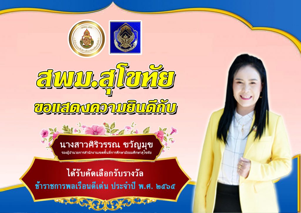 ขอแสดงความยินดีกับนางสาวศิริวรรณ ขวัญมุข รองผู้อำนวยการสำนักงานเขตพื้นที่การศึกษามัธยมศึกษาสุโขทัย ได้รับคัดเลือกรับรางวัลข้าราชการพลเรือนดีเด่น ประจำปี พ.ศ 2565 17 กุมภาพันธ์ 256617 กุมภาพันธ์ 2023 ธีรโชติ พระเจริญ ข่าวกิจกรรม สพม.สุโขทัย ขอแสดงความยินดีกับนางสาวศิริวรรณ ขวัญมุข รองผู้อำนวยการสำนักงานเขตพื้นที่การศึกษามัธยมศึกษาสุโขทัย ได้รับคัดเลือกรับรางวัลข้าราชการพลเรือนดีเด่น ประจำปี พ.ศ 2565 เยี่ยมชม : 1,563 ธีรโชติ พระเจริญ