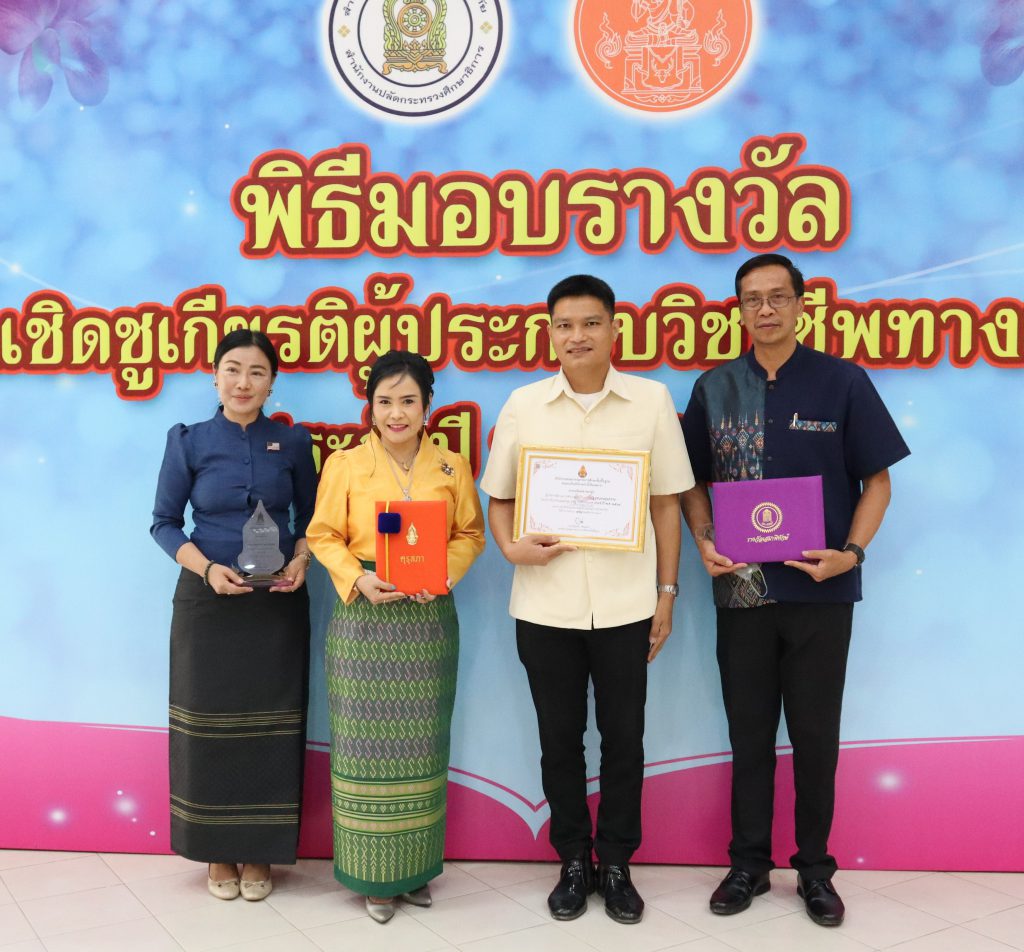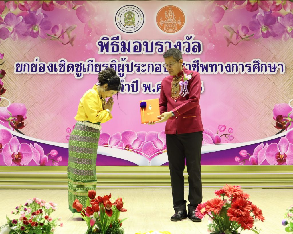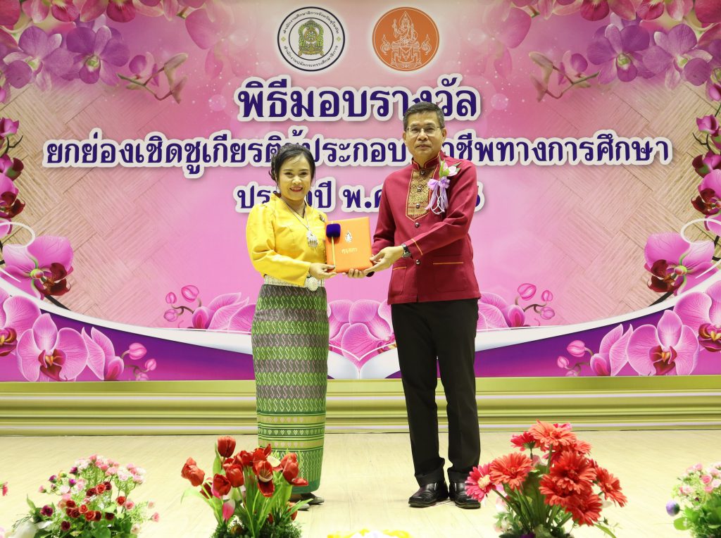 นางสาวศิริวรรณ ขวัญมุข รองผู้อำนวยการสำนักงานเขตพื้นที่การศึกษามัธยมศึกษาสุโขทัย เข้ารับรางวัลคุรุสดุดีประจำปี 2565 โดยมีนายสุชาติ ทีคะสุข ผู้ว่าราชการจังหวัดสุโขทัย เป็นประธานในการมอบรางวัลเพื่อยกย่องเชิดชูเกียรติ ผู้ประกอบวิชาชีพทางการศึกษาที่ตั้งใจปฏิบัติตนตามจรรยาบรรณของวิชาชีพจนสามารถเป็นแบบอย่างที่ดี ณ อาคารวรรณกลาง มหาวิทยาลัยการกีฬาแห่งชาติ วิทยาเขตสุโขทัย (วันที่ 23 กุมภาพันธ์ 2566)