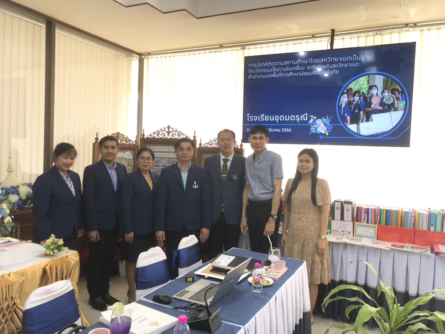 นายสุดเขต สวยสม ผู้อำนวยการสำนักงานเขตพื้นที่การศึกษามัธยมศึกษาสุโขทัย มอบหมายให้คณะกรรมการการนิเทศ ติดตามสถานศึกษา และนางสาวนาริน ไกรสา เจ้าพนักงานธุรการปฏิบัติงาน ออกนิเทศ ติดตามสถานศึกษาโดยใช้สหวิทยาเขตเป็นฐาน ใช้นวัตกรรมเป็นการขับเคลื่อนระดับภายในสหวิทยาเขต สำนักงานเขตพื้นที่การศึกษามัธยมศึกษาสุโขทัย ณ โรงเรียนอุดมดรุณี (วันที่ 20 มีนาคม 2566)