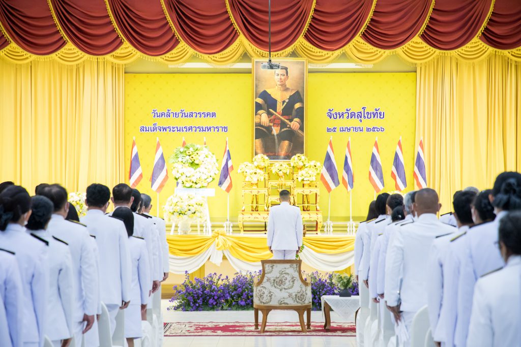 นายสุดเขต สวยสม ผู้อำนวยการสำนักงานเขตพื้นที่การศึกษามัธยมศึกษาสุโขทัย มอบหมายให้ นางรัชนีกร งามนิกุลชลิน ผอ.กลุ่มส่งเสริมการศึกษาทางไกลฯ และหน่วยตรวจสอบภายใน เข้าร่วมงานวันรัฐพิธี “วันคล้ายวันสวรรคตสมเด็จพระนเรศวรมหาราช” เพื่อน้อมรำลึกถึงพระเกียรติคุณของสมเด็จพระนเรศวรมหาราช โดยมีนายสุชาติ ทีคะสุข ผู้ว่าราชการจังหวัดสุโขทัย เป็นประธานในพิธี ณ อาคารวรรณกลาง มหาวิทยาลัยการกีฬาแห่งชาติ วิทยาเขตสุโขทัย (วันที่ 25 เมษายน 2566)