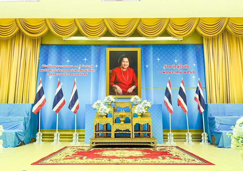 นายสุดเขต สวยสม ผู้อำนวยการสำนักงานเขตพื้นที่การศึกษามัธยมศึกษาสุโขทัย มอบหมายให้ นางสาวศิริวรรณ ขวัญมุข รองผู้อำนวยการสำนักงานเขตพื้นที่การศึกษามัธยมศึกษาสุโขทัย พร้อมด้วยนายทวีศักดิ์ นาโสก นิติกรชำนาญการพิเศษ นายวิศวัฒน์ วิลาวัลย์ นักวิชาการเงินและบัญชีปฏิบัติการ และกลุ่มอำนวยการ ร่วมพิธีทำบุญตักบาตร และวางพานพุ่ม เนื่องในโอกาสเฉลิมฉลองวาระครบรอบ 100 ปี วันประสูติสมเด็จพระเจ้าพี่นางเธอ เจ้าฟ้ากัลยาณิวัฒนา กรมหลวงนราธิวาสราชนคริทร์ โดยมี นายสุชาติ ทีคะสุข ผู้ว่าราชการจังหวัดสุโขทัย เป็นประธานในพิธี เพื่อถวายเป็น พระราชกุศลฯ ณ อาคารวรรณกลาง มหาวิทยาลัยการกีฬาแห่งชาติ วิทยาเขตสุโขทัย (วันที่ 6 พฤษภาคม 2566)