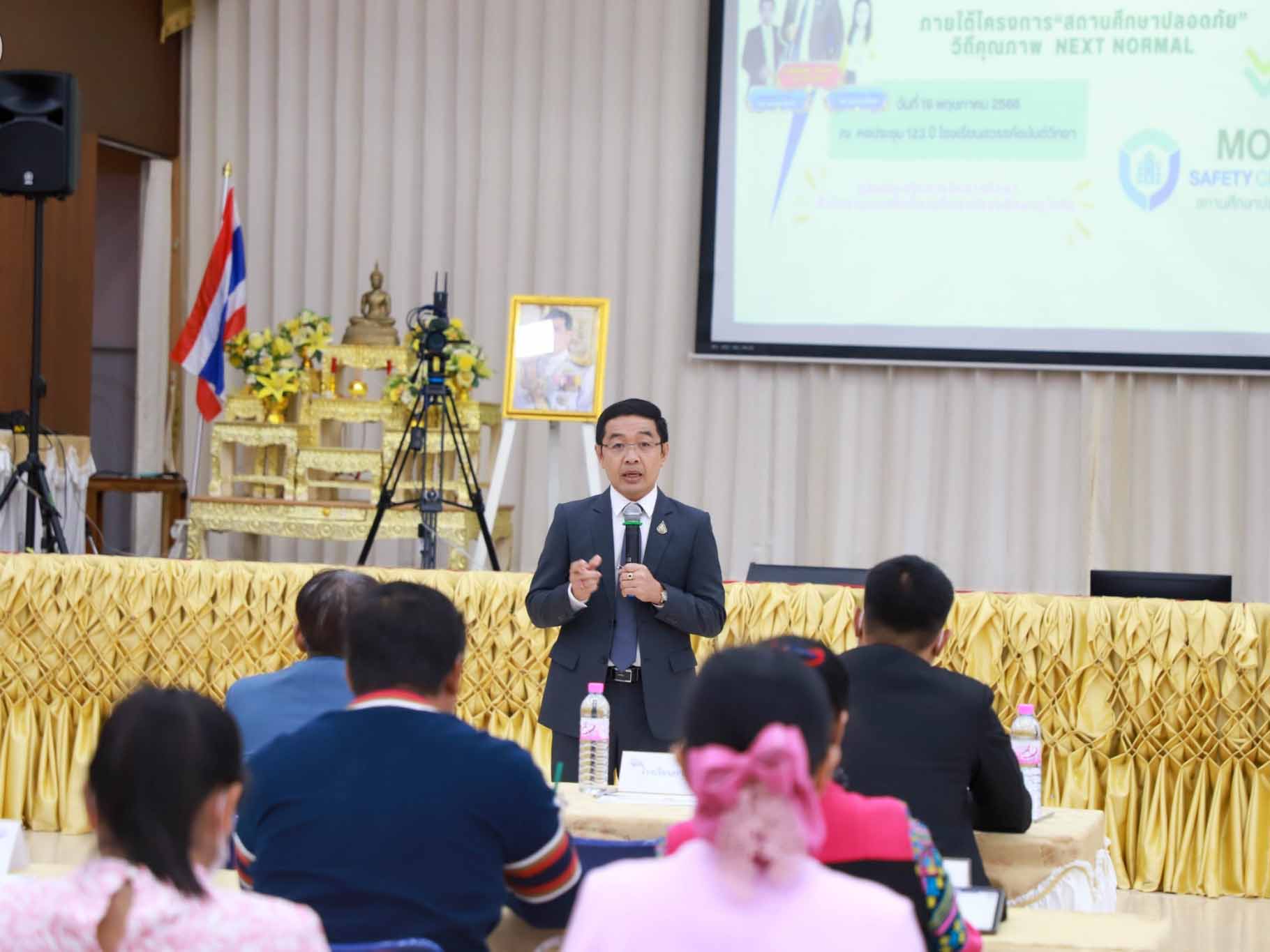 นายสุดเขต สวยสม ผู้อำนวยการสำนักงานเขตพื้นที่การศึกษามัธยมศึกษาสุโขทัย มอบหมายให้ นายศราวุธ คำแก้ว รองผู้อำนวยการสำนักงานเขตพื้นที่การศึกษามัธยมศึกษาสุโขทัย เข้าร่วมการประชุม และกล่าวรายงานการประชุมเชิงปฏิบัติการสร้างความรู้ ความเข้าใจในการดูแลความปลอดภัยให้กับผู้เรียน ครู บุคลากรทางการศึกษา และสถานศึกษาจากภัยพิบัติภัยคุกคามทุกรูปแบบ การใช้งานในระบบ มาตรฐาน ความปลอดภัย (MOE Safety Center) การค้นหา เด็กตกหล่นและออกกลางคัน”พาน้องกลับมาเรียน” ให้กับโรงเรียนในสังกัดภายใต้โครงการ“สถานศึกษาปลอดภัย” วิถีคุณภาพ NEXT..NORMAL พร้อมด้วยกลุ่มส่งเสริมการจัดการศึกษา คณะผู้บริหารสถานศึกษา รองผู้บริหาร สถานศึกษา ครู และบุคลากรทางการศึกษา เข้าร่วมการประชุม ประธานเปิดการประชุมโดย ดร.ธีร์ ภวังคนันท์ รองเลขาธิการ สพฐ. วิทยากรโดย ดร.ชนะ สุ่มมาตย์ ผู้เชี่ยวชาญ ด้านการพัฒนาการ แนะแนว สำนักวิชาการและมาตรฐานการศึกษา รักษาการ ที่ปรึกษาด้านการศึกษา พิเศษและผู้ด้อยโอกาส สำนักงาน คณะกรรมการการศึกษาขั้นพื้นฐาน และเจ้าหน้าที่ศูนย์ความปลอดภัยกระทรวงศึกษาธิการ ณ หอประชุม 123 ปี โรงเรียนสวรรค์อนันต์วิทยา (วันที่ 19 พฤษภาคม 2566)