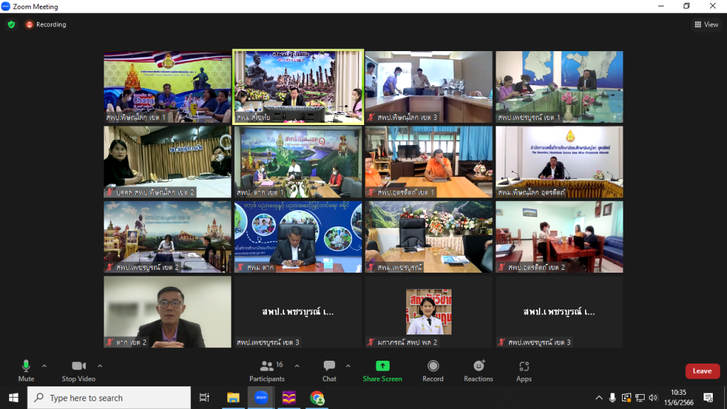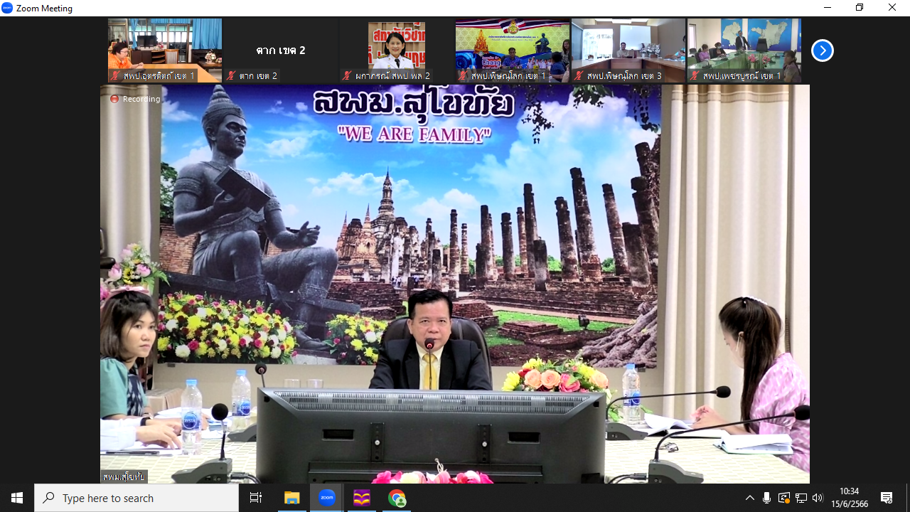 นายสุดเขต สวยสม ผู้อำนวยการสำนักงานเขตพื้นที่การศึกษามัธยมศึกษาสุโขทัย ประธานกรรมการบริหารกลุ่มพื้นที่การศึกษา ประจำเขตตรวจราชการที่ 17 เป็นประธานการประชุมการบริหารจัดการเกี่ยวกับการออกข้อสอบภาค ก และ ภาค ข ในการสอบแข่งขัน เพื่อบรรจุและแต่งตั้งบุคคลเข้ารับราชการเป็นข้าราชการครูและบุคลากรทางการศึกษา ตำแหน่งครูผู้ช่วย สังกัดสำนักงานคณะกรรมการการศึกษา ตำแหน่งครูผู้ช่วย ปี พ.ศ.2566,,(รูปแบบออนไลน์) พร้อมด้วยกลุ่มบริหารงานบุคคล นายทวีศักดิ์ นาโสก ผอ.กลุ่มกฎหมายและคดี นางสาวเพ็ญจันทร์ มั่นคง นักวิชาการเงินและบัญชีชำนาญการ โดยมีผู้อำนวยการสำนักงานเขตพื้นที่การศึกษาในกลุ่มพื้นที่การศึกษา ประจำเขตตรวจราชการที่ 17 ที่ดำเนินการสอบแข่งขัน เข้าร่วมประชุม ผ่านระบบ Zoom ณ ห้องประชุมเขาหลวง สำนักงานเขตพื้นที่การศึกษามัธยมศึกษาสุโขทัย (วันที่ 15 มิถุนายน 2566)