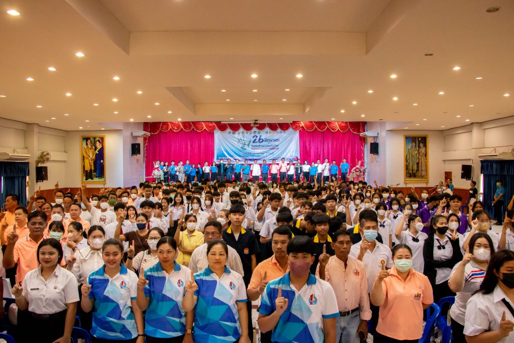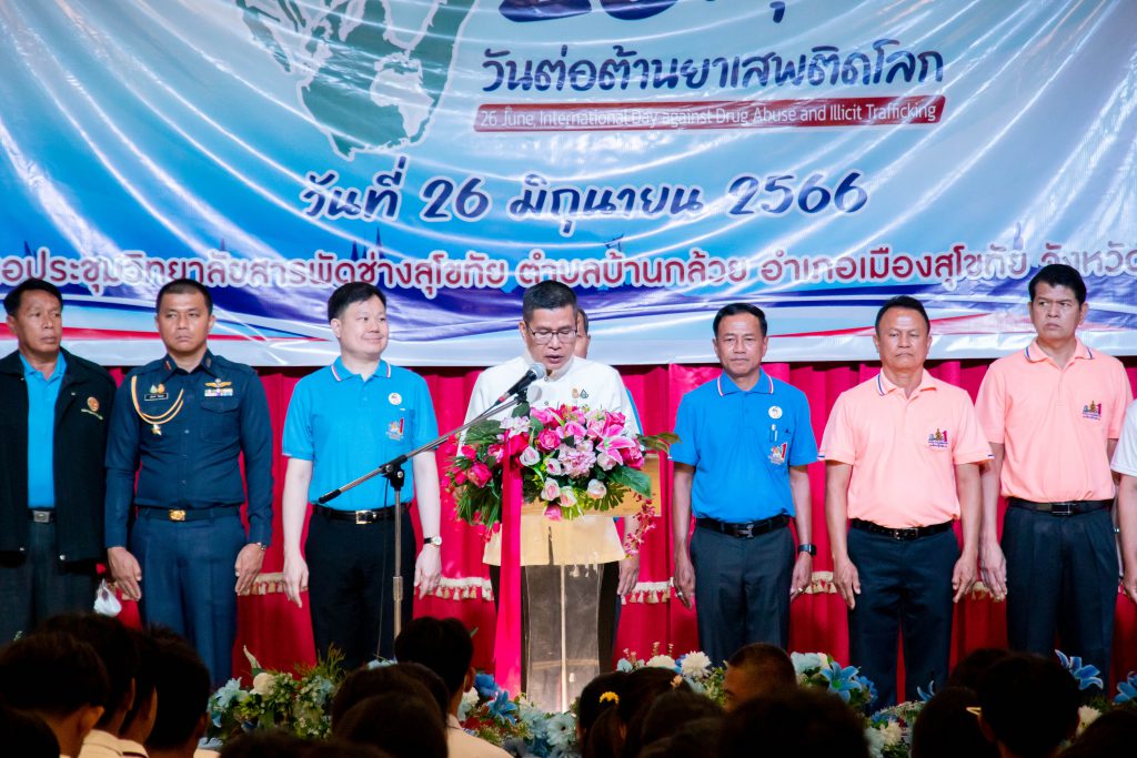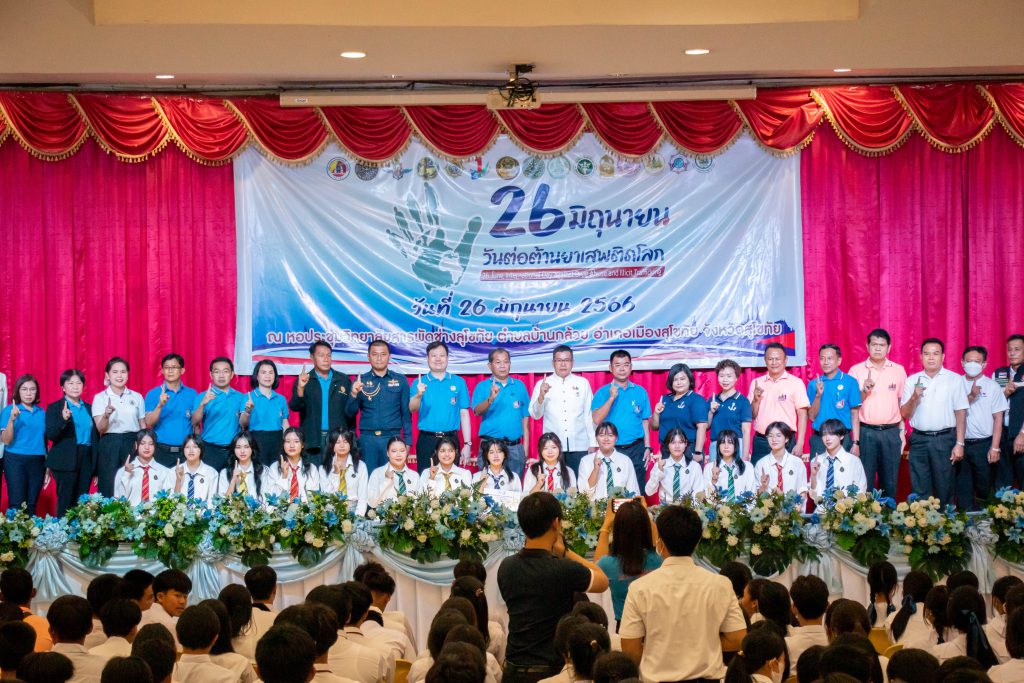 นายสุดเขต สวยสม ผู้อำนวยการสำนักงานเขตพื้นที่การศึกษามัธยมศึกษาสุโขทัย มอบหมายให้ นายศราวุธ คำแก้ว รองผู้อำนวยการสำนักงานเขตพื้นที่การศึกษามัธยมศึกษาสุโขทัย และนางสาวนิรวรรณ เลื่อนชิด นักวิชาการศึกษา เข้าร่วมเป็นเกียรติในพิธีเปิดกิจกรรมรณรงค์ วันต่อต้านยาเสพติดโลก (26 มิถุนายน) ประจำปี 2566 โดยมีนายสุชาติ ทีคะสุข ผู้ว่าราชการจังหวัดสุโขทัย เป็นประธานในพิธีเปิดกิจกรรมฯ เพื่อสนับสนุนการรณรงค์ประชาสัมพันธ์เพื่อสร้างการรับรู้ สร้างกระแสการมีส่วนร่วมของประชาชน ให้เกิดความตระหนักถึงปัญหายาเสพติดภายใต้กรอบแนวคิด “รวมพลังไทย หยุดภัยยาเสพติด” และเพื่อให้ประชาชน หมู่บ้าน/ชุมชน และประเทศไทยปลอดภัยจากยาเสพติดได้อย่างยั่งยืน ณ หอประชุมวิทยาลัยสารพัดช่างสุโขทัย (วันที่ 26 มิถุนายน 2566)