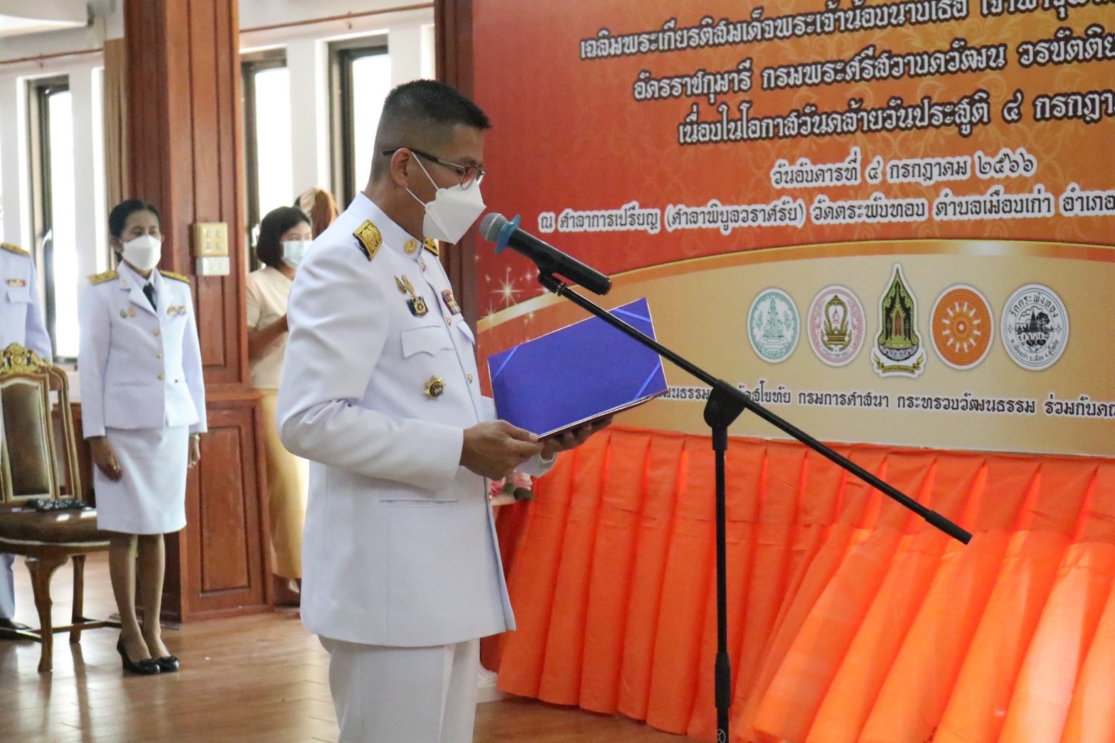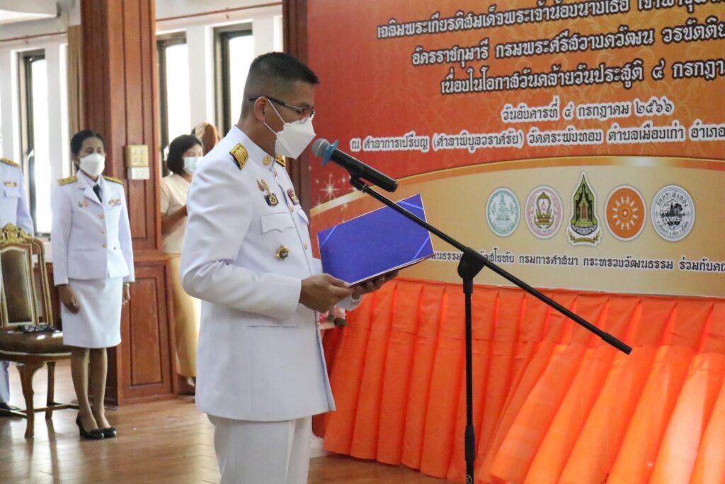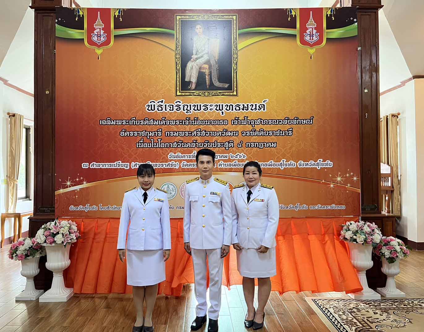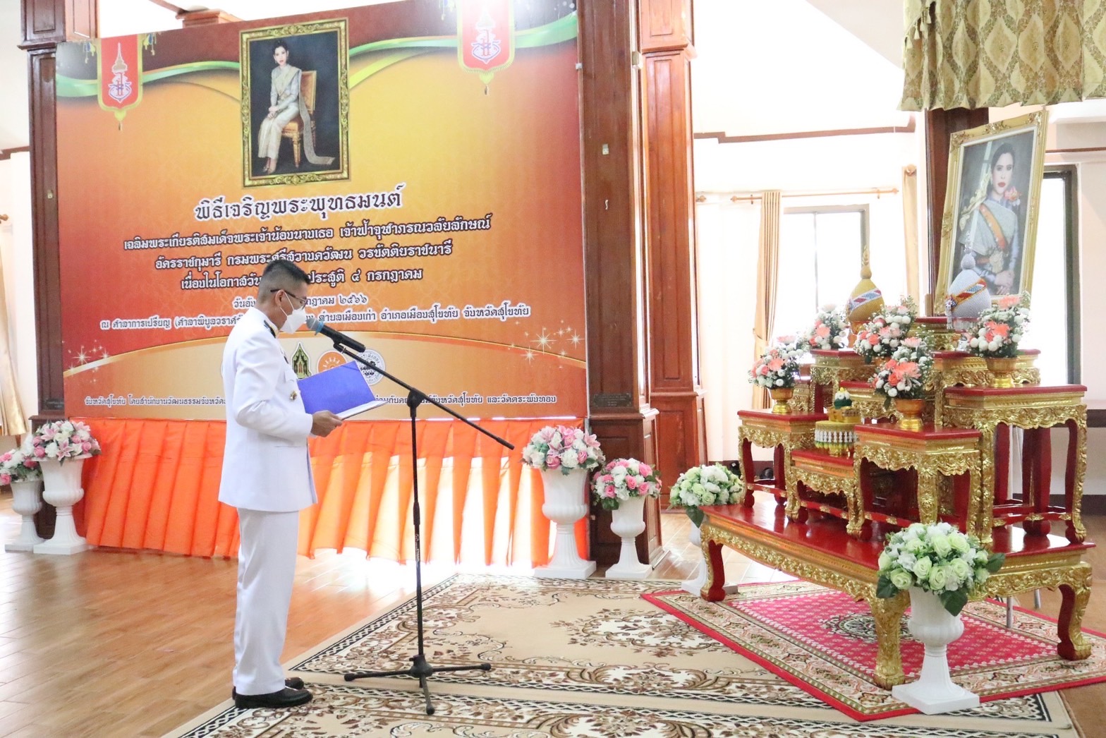 นายสุดเขต สวยสม ผู้อำนวยการสำนักงานเขตพื้นที่การศึกษามัธยมศึกษาสุโขทัย มอบหมายให้ กลุ่มส่งเสริมการจัดการศึกษา เข้าร่วมพิธีเจริญพระพุทธมนต์ เฉลิมพระเกียรติสมเด็จพระเจ้าน้องนางเธอ เจ้าฟ้าจุฬาภรณวลัยลักษณ์ อัครราชกุมารี กรมพระศรีสวางควัฒน วรขัตติยราชนารี โดยมีนายสุชาติ ทีคะสุข ผู้ว่าราชการจังหวัดสุโขทัย เป็นประธานในพิธีฯ เพื่อถวายเป็นพระราชกุศล สมเด็จพระเจ้าน้องนางเธอ เจ้าฟ้าจุฬาภรณวลัยลักษณ์ อัครราชกุมารี กรมพระศรีสวางควัฒน วรขัตติยราชนารี เนื่องในโอกาสวันคล้ายวันประสูติ 4 กรกฎาคม 2566 ณ ศาลาการเปรียญ วัดตระพังทอง ตำบลเมืองเก่า อำเภอเมือง จังหวัดสุโขทัย (วันที่ 4 กรกฎาคม 2566)