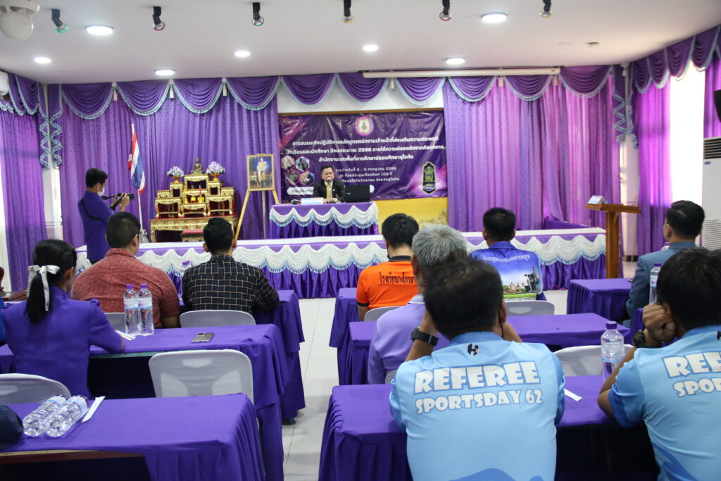 นายสุดเขต สวยสม ผู้อำนวยการสำนักงานเขตพื้นที่การศึกษามัธยมศึกษาสุโขทัย เป็นประธานเปิดการอบรมเชิงปฏิบัติการหลักสูตรพนักงานเจ้าหน้าที่ส่งเสริมความประพฤตินักเรียนและนักศึกษา ปีงบประมาณ 2566 ภายใต้ความปลอดภัยจากภัยคุกคาม นายศราวุธ คำแก้ว รองผู้อำนวยการสำนักงานเขตพื้นที่การศึกษามัธยมศึกษาสุโขทัย กล่าวรายงานการอบรมฯ พร้อมด้วยกลุ่มส่งเสริมการจัดการศึกษา โดยมีผู้บริหารสถานศึกษา ข้าราชการครูและบุคลากรทางการศึกษาในสังกัดเข้าร่วมการอบรม เพื่อขยายผลจำนวนพนักงานเจ้าหน้าที่ส่งเสริมความประพฤตินักเรียน และนักศึกษา (พนส.) ให้เพียงพอต่อการปฏิบัติงานตามบทบาทหน้าที่ที่กฎหมายกำหนด ส่งเสริม สนับสนับสนุนให้สำนักงานเขตพื้นที่การศึกษาทุกเขต ขับเคลื่อนการดำเนินงานส่งเสริมความประพฤตินักเรียนและนักศึกษา ณ ห้องประชุม 109 ปี โรงเรียนสุโขทัยวิทยาคม (วันที่ 6 กรกฎาคม 2566)