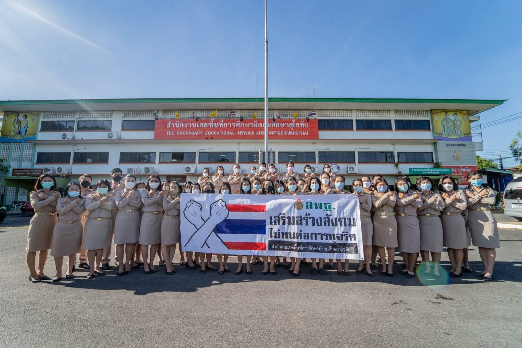นายสุดเขต สวยสม ผู้อำนวยการสำนักงานเขตพื้นที่การศึกษามัธยมศึกษาสุโขทัยพร้อมคณะบุคลากรร่วมกิจกรรมเข้าแถวร้องเพลงชาติ สวดมนต์ไหว้พระ กล่าวคำปฏิญญาเขตพื้นที่การศึกษาสุจริต และประกาศเจตจำนงสุจริตในการบริหารงานสำนักงานเขตพื้นที่การศึกษามัธยมศึกษาสุโขทัย เพื่อแสดงความจงรักภักดีต่อสถาบันชาติ ศาสนา และพระมหากษัตริย์ เป็นกิจกรรม ที่แสดงออกเชิงสัญลักษณ์ ผู้บริหารสำนักงานเขตพื้นที่การศึกษามีการพบปะพูดคุยกับบุคลากร ให้ขวัญกำลังใจ และทบทวนภารกิจงานในรอบสัปดาห์ที่ผ่านมา พร้อมแจ้งข้อราชการและภารกิจต่างๆ ในรอบสัปดาห์
