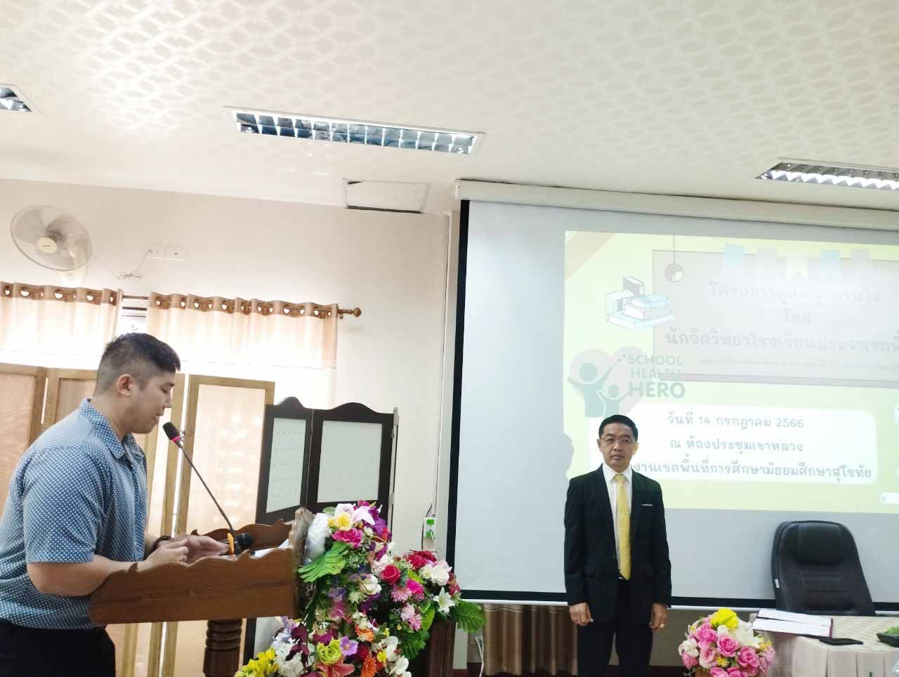 นายสุดเขต สวยสม ผู้อำนวยการสำนักงานเขตพื้นที่การศึกษามัธยมศึกษาสุโขทัย มอบหมายให้ นายศราวุธ คำแก้ว รองผู้อำนวยการสำนักงานเขตพื้นที่การศึกษามัธยมศึกษาสุโขทัย เป็นประธานเปิดการอบรมโครงการดูแลสุขภาพใจโดยนักจิตวิทยาโรงเรียนประจำเขตพื้นที่ พร้อมด้วยกลุ่มส่งเสริมการจัดการศึกษา มีผู้เข้ารับการอบรม เป็นข้าราชการครูผู้ดูแลระบบสุขภาพจิตโรงเรียนวิถีใหม่ School..Health..Hero ของโรงเรียนในสังกัด 27 โรงเรียน โรงเรียนละ 2 ท่าน และได้รับเกียรติจาก นายเมธัส ตาเขียววงศ์ นักจิตวิทยา ศูนย์สุขภาพจิตที่ 2 พิษณุโลก และคณะ มาเป็นวิทยากร เพื่อพัฒนาระบบการดูแลช่วยเหลือนักเรียนโดยมีนักจิตวิทยาโรงเรียนประจำเขตพื้นที่การศึกษาเป็นกลไกในการขับเคลื่อน และช่วยวางแผนในการช่วยเหลือ ณ ห้องประชุมเขาหลวง สำนักงานเขตพื้นที่การศึกษามัธยมศึกษาสุโขทัย (วันที่ 14 กรกฎาคม 2566)