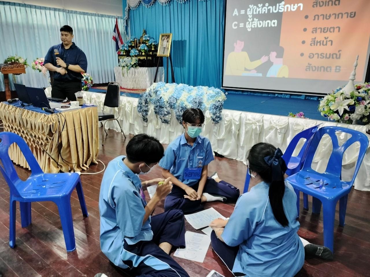 นายสุดเขต สวยสม ผู้อำนวยการสำนักงานเขตพื้นที่การศึกษามัธยมศึกษาสุโขทัย มอบหมายให้ นายปวีณ ไชยวงค์วิลาน นักจิตวิทยาโรงเรียนประจำเขตพื้นที่การศึกษา เป็นวิทยากรในการอบรมนักเรียนแกนนำเพื่อนให้คำปรึกษา เพื่อสร้างเสริมสุขภาพนักเรียน ในด้านสุขภาพจิต ณ ห้องประชุมนครเดิฐ โรงเรียนศรีนคร (วันที่ 18 สิงหาคม 2566)