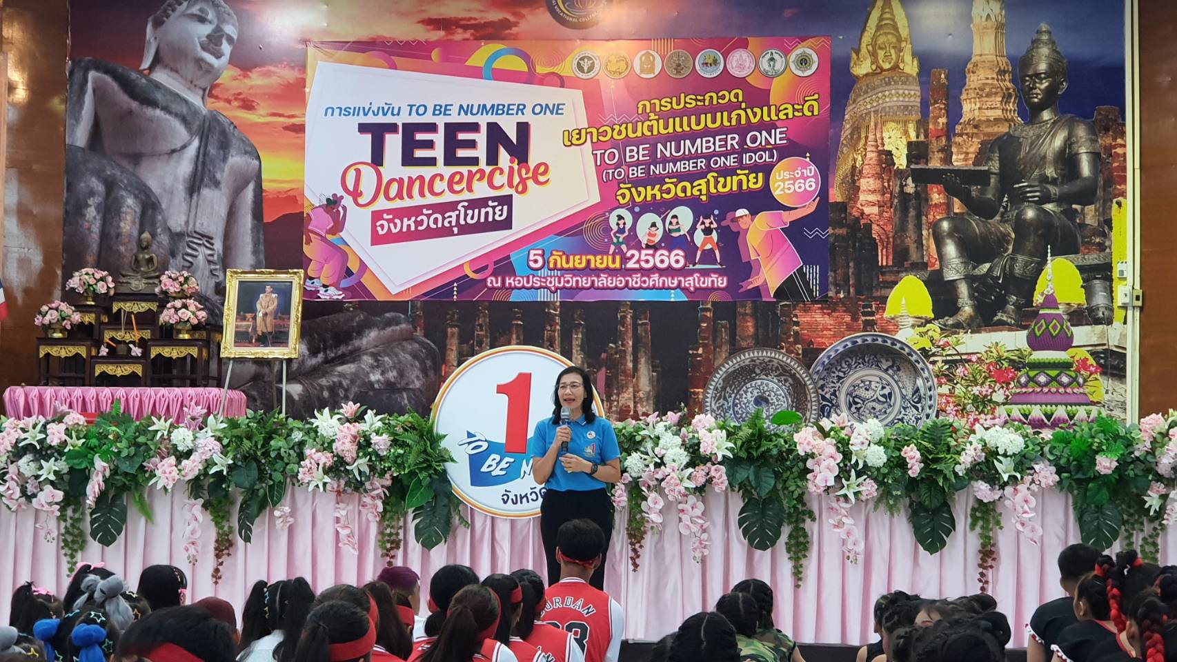 นายสุดเขต สวยสม ผู้อำนวยการสำนักงานเขตพื้นที่การศึกษามัธยมศึกษาสุโขทัย มอบหมายให้นายศราวุธ คำแก้ว รองผู้อำนวยการสำนักงานเขตพื้นที่การศึกษามัธยมศึกษาสุโขทัย ร่วมเป็นคณะกรรมการตัดสินการแข่งขัน TO BE NUMBER ONE TEEN DANCERCISE และเยาวชนต้นแบบเก่งและดี (TO BE NUMBER ONE IDOL) ระดับจังหวัด เพื่อสร้างกระแส “เป็นหนึ่งโดยไม่พึ่งยาเสพติด” ในรูปแบบที่เยาวชนชื่นชอบ ณ หอประชุมวิทยาลัยอาชีวศึกษาสุโขทัย อำเภอเมือง จังหวัดสุโขทัย (วันที่ 5 กันยายน 2566)