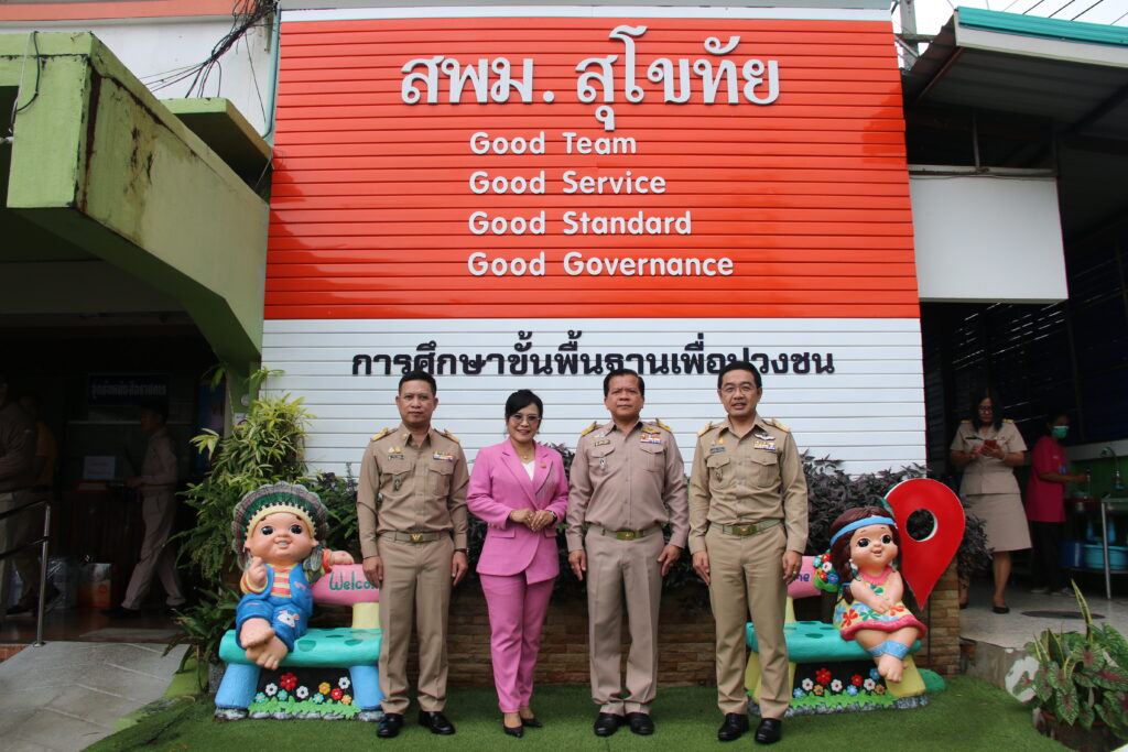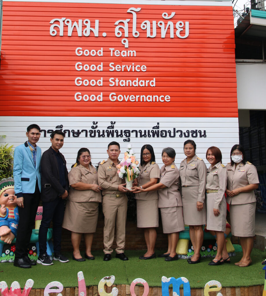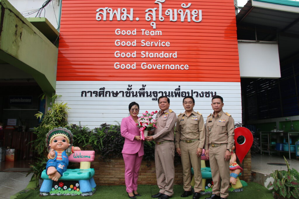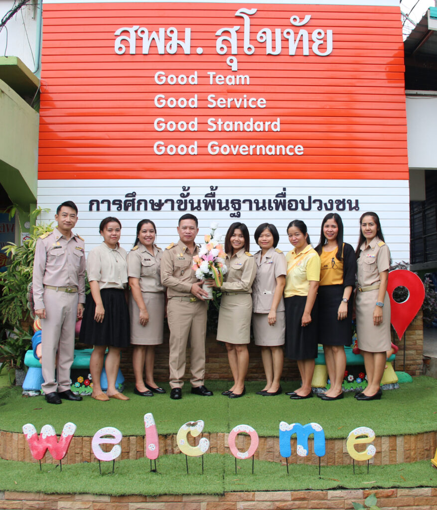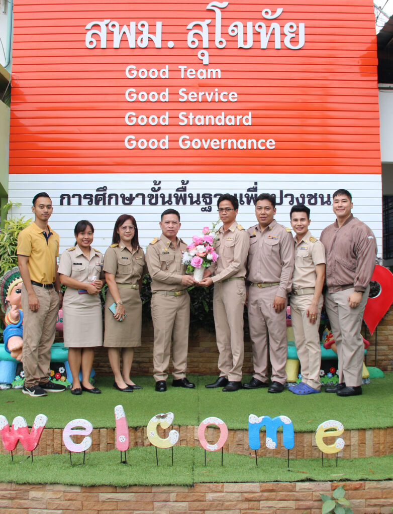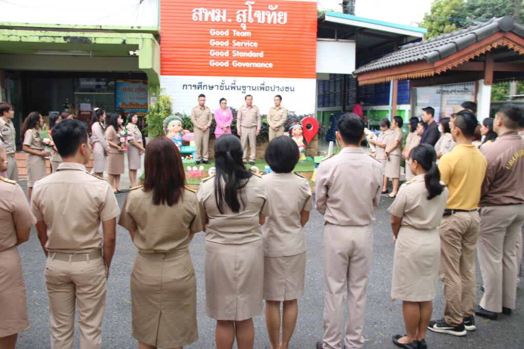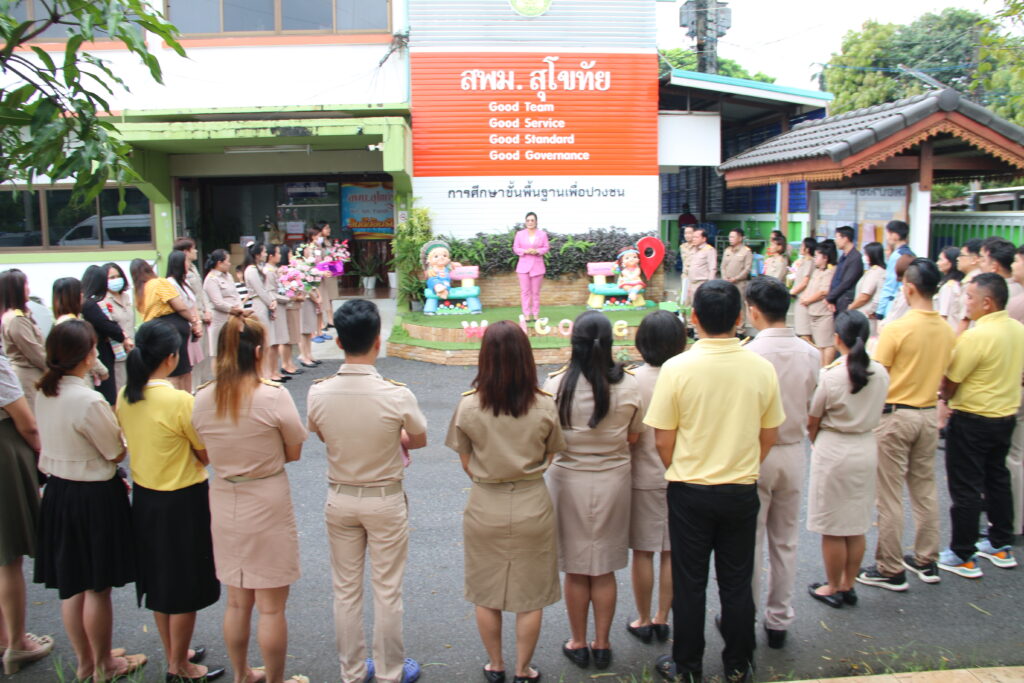 นายสุดเขต สวยสม ผู้อำนวยการสำนักงานเขตพื้นที่การศึกษามัธยมศึกษาสุโขทัย พร้อมด้วย นายศราวุธ คำแก้ว และบุคลากร สพม.สุโขทัย ร่วมแสดงความยินดีกับ นางสาวศิริวรรณ ขวัญมุข เนื่องในโอกาสได้รับคำสั่งแต่งตั้ง ให้ดำรงตำแหน่ง ผู้อำนวยการสำนักงานเขตพื้นที่การศึกษามัธยมศึกษาเพชรบุรี และร่วมต้อนรับนายวัลลภ เอี่ยมมะ รองผู้อำนวยการสำนักงานเขตพื้นที่การศึกษามัธยมศึกษาสุโขทัย ณ หน้าอาคารสำนักงานเขตพื้นที่การศึกษามัธยมศึกษาสุโขทัย (วันที่ 9 ตุลาคม 2566)