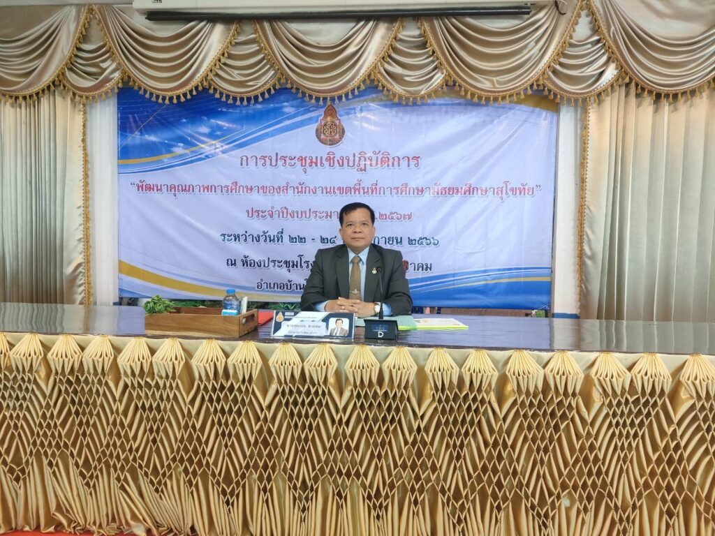 สำนักงานเขตพื้นที่การศึกษามัธยมศึกษาสุโขทัย จัดประชุมเชิงปฏิบัติการพัฒนาคุณภาพการศึกษาของสำนักงานเขตพื้นที่การศึกษามัธยมศึกษาสุโขทัย ประจำปีงบประมาณ พ.ศ 2566 ระหว่างวันที่ 22-24 พฤศจิกายน 2566 ณ โรงเรียนบ้านโคกวิทยาคม อำเภอบ้านโคก จังหวัดอุตรดิตถ์ เพื่อนำผลการดำเนินงาน/วิเคราะห์ผลการดำเนินงานในปีงบประมาณ 2566 พิจารณาร่างแผนปฏิบัติการประจำปีงบประมาณ 2567 และพิจารณาทบทวนแผนพัฒนาคุณภาพการศึกษา 5 ปี 2566 – 2570 โดยมีนายสุดเขต สวยสม ผู้อำนวยการสำนักงานเขตพื้นที่การศึกษามัธยมศึกษาสุโขทัย เป็นประธานการประชุม พร้อมด้วยนายศราวุธ คำแก้ว นายวัลลภ เอี่ยมมะ รองผู้อำนวยการสำนักงานเขตพื้นที่การศึกษามัธยมศึกษาสุโขทัย ผู้อำนวยการกลุ่มทุกกลุ่ม ผู้แทนอ.ก.ค.ศ. ผู้แทนก.ต.ป.น.และผู้แทนผู้บริหารสถานศึกษาในสังกัดเข้าร่วมประชุม