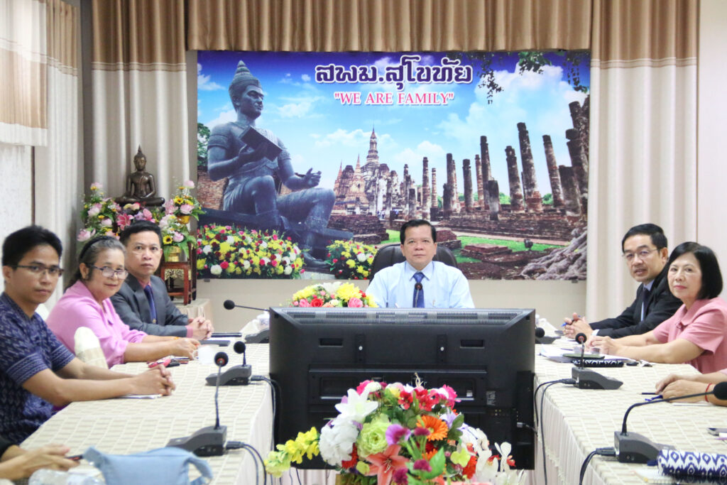 นายสุดเขต สวยสม ผู้อำนวยการสำนักงานเขตพื้นที่การศึกษามัธยมศึกษาสุโขทัย พร้อมด้วยนายศราวุธ คำแก้ว                    นายวัลลภ  เอี่ยมมะ รองผู้อำนวยการสำนักงานเขตพื้นที่การศึกษามัธยมศึกษาสุโขทัย ผู้อำนวยการกลุ่ม/หน่วย และบุคลากรที่เกี่ยวข้อง ร่วมรับชมรายการ “พฤหัสเช้า ข่าวสพฐ.” ครั้งที่ 7/2566 โดย ท่านปวีณา หงสกุล ประธานมูลนิธิหงสกุล  เพื่อเด็กและสตรี และดร.ธีร์ ภวังคนันท์ รองเลขาธิการ กพฐ. ผ่านระบบทางไกลออนไลน์ Zoom Meeting เพื่อนำนโยบาย                  ไปสู่การปฏิบัติ ณ ห้องประชุมเขาหลวง สำนักงานเขตพื้นที่การศึกษามัธยมศึกษาสุโขทัย (วันที่ 7 ธันวาคม 2566)