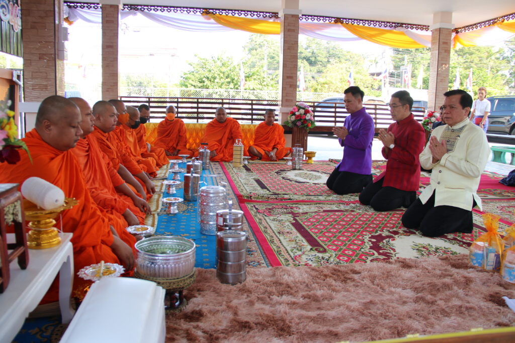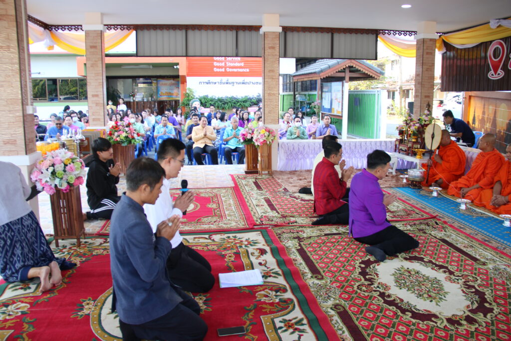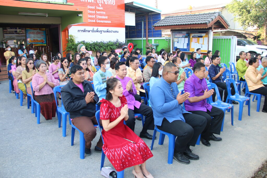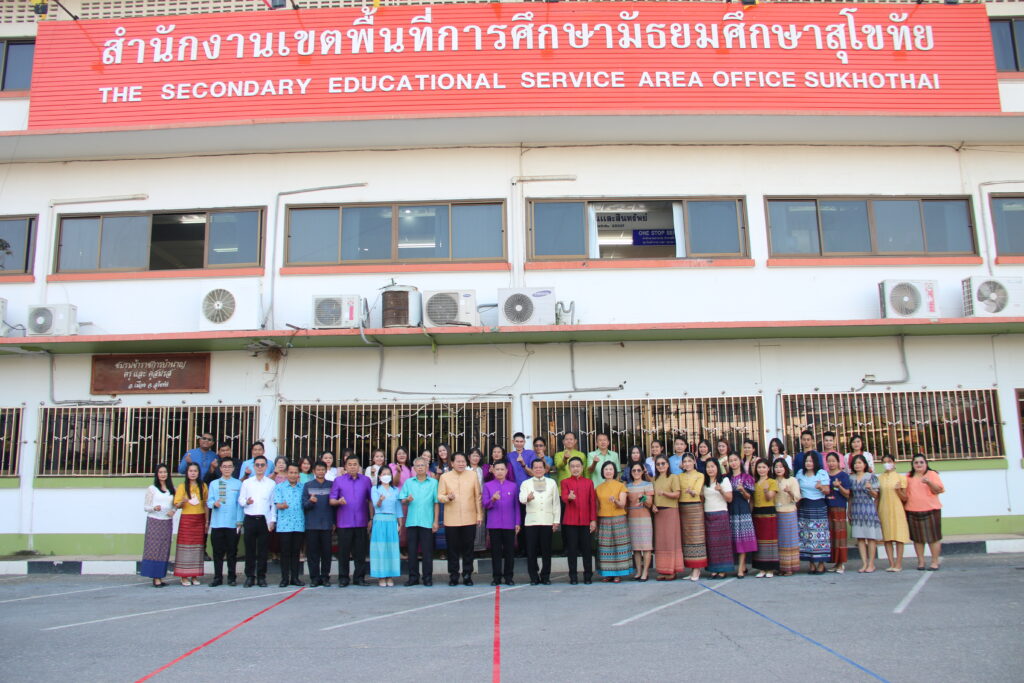 นายสุดเขต สวยสม ผู้อำนวยการสำนักงานเขตพื้นที่การศึกษามัธยมศึกษาสุโขทัย พร้อมด้วยนายศราวุธ คำแก้ว นายวัลลภ เอี่ยมมะ รองผู้อำนวยการสำนักงานเขตพื้นที่การศึกษามัธยมศึกษาสุโขทัย ผู้บริหารสถานศึกษาและบุคลากร สพม.สุโขทัย ร่วมทำบุญเปิดป้ายศาลาอเนกประสงค์ “ศาลารุ่งอรุณ แห่งความสุข” ณ สำนักงานเขตพื้นที่การศึกษามัธยมศึกษาสุโขทัย (วันที่ 27 ธันวาคม 2566)