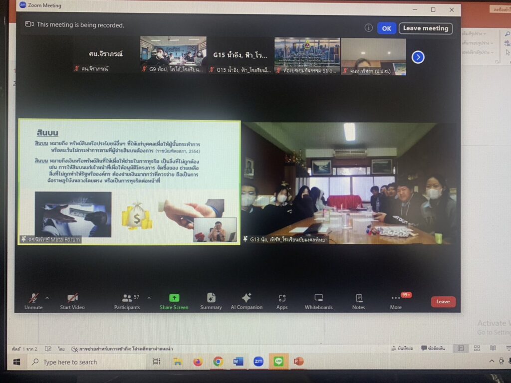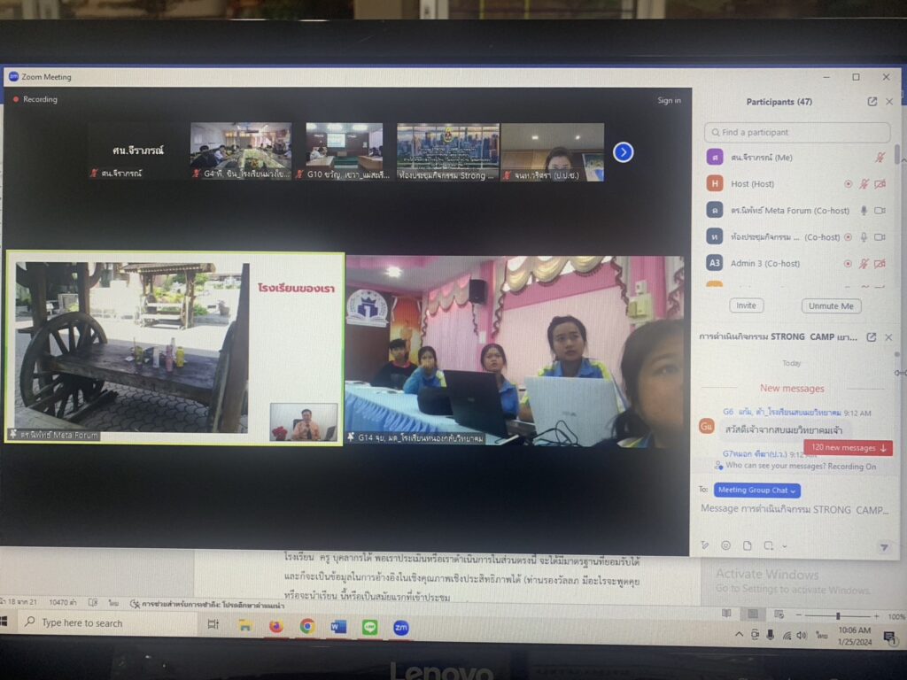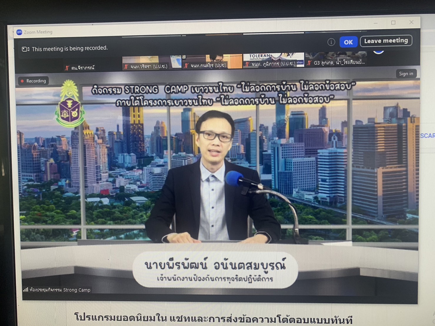 นายสุดเขต สวยสม ผู้อำนวยการสำนักงานเขตพื้นที่การศึกษามัธยมศึกษาสุโขทัย​ มอบหมายให้นางสาวจีราภรณ์ รอดเชื้อ​ศึกษา​นิเทศ​ก์ชำนาญการพิเศษ เข้าร่วมกิจกรรม STRONG CAMPนเยาวชนไทย  “ไม่ลอกการบ้าน ไม่ลอกข้อสอบ” ภายใต้โครงการเยาวชนไทย “ไม่ลอกการบ้าน ไม่ลอกข้อสอบ” ประจำปีงบประมาณ พ.ศ.2567 (ครั้งที่ 9 จังหวัดแพร่ จังหวัดแม่ฮ่องสอน จังหวัดสุโขทัย) ในรูปแบบ Online โดยมีศูนย์กลางปฏิบัติการอบรมออนไลน์ผ่านระบบ ZOOM Webinar ณ​ โรงแรมรอยัลริเวอร์ เขตบางพลัด กรุงเทพมหานคร โดยมีคุณครูที่ปรึกษา/ผู้รับผิดชอบ และแกนนำนักเรียนที่กำลังศึกษาระดับชั้นมัธยมศึกษาปีที่ 4-5 เข้าร่วมกิจกรรมดังกล่าว เพื่อให้เด็กและเยาวชนตระหนักถึงปัญหา เข้าใจและประพฤติปฏิบัติในประเด็นการไม่ลอกการบ้าน ไม่ลอกข้อสอบ (วันที่ 25 มกราคม 2567)