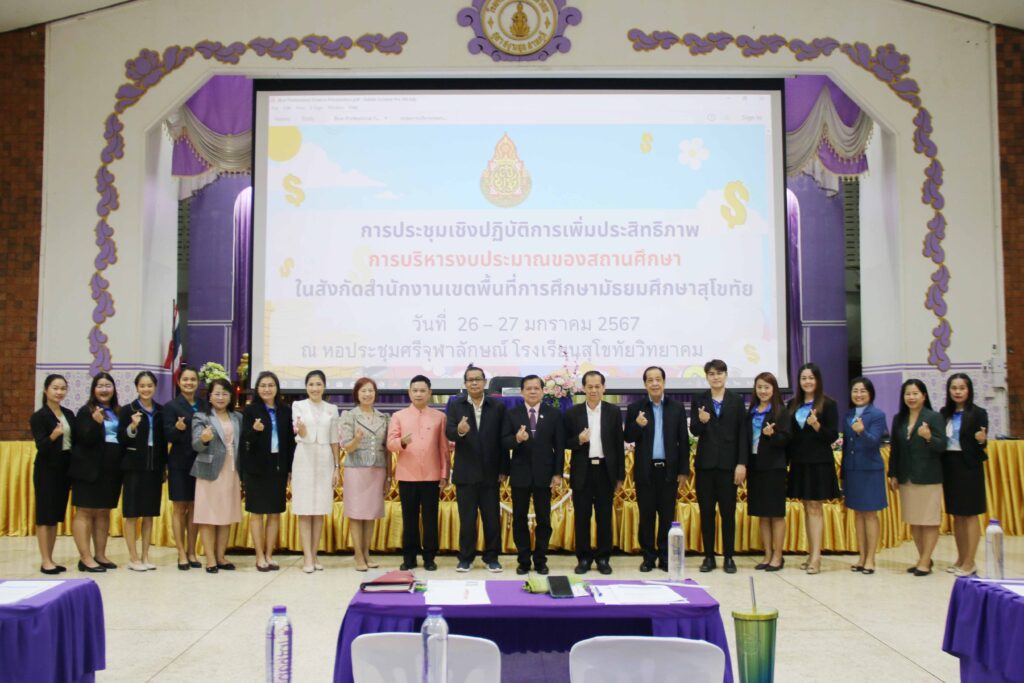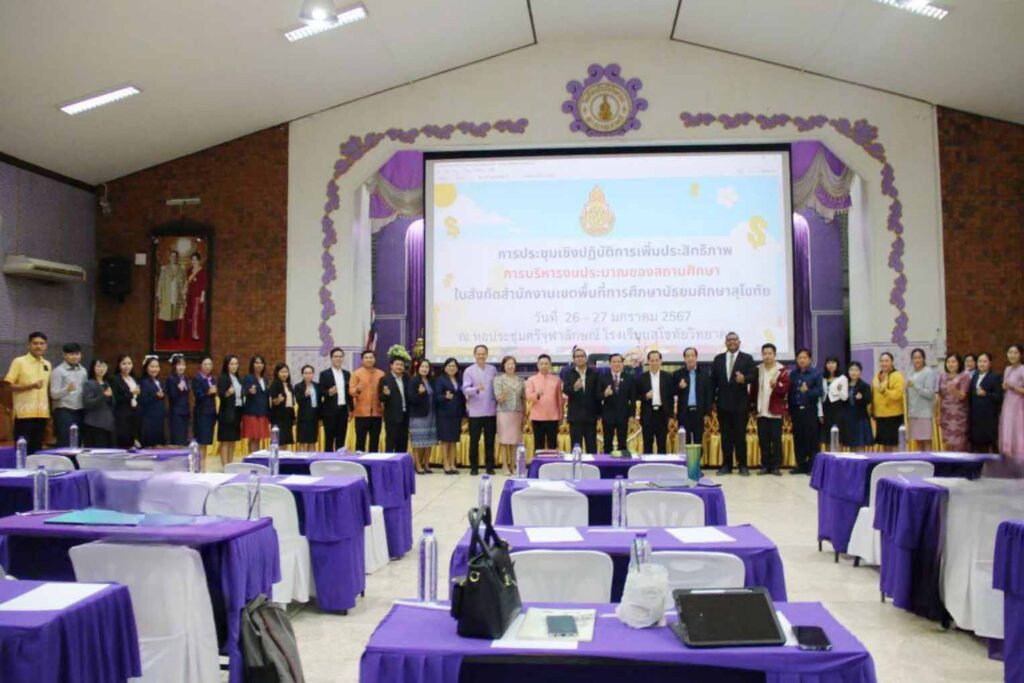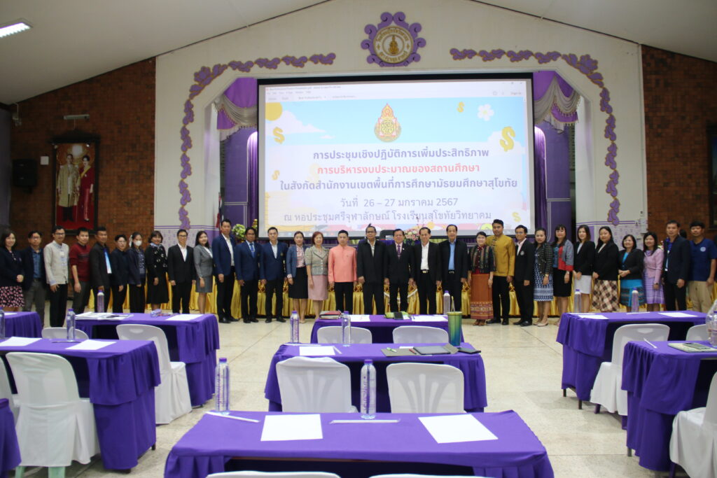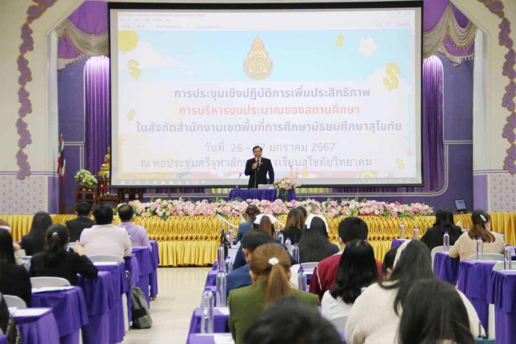 นายสุดเขต สวยสม ผู้อำนวยการสำนักงานเขตพื้นที่การศึกษามัธยมศึกษาสุโขทัย เป็นประธานการประชุมเชิงปฏิบัติการ “การเพิ่มประสิทธิภาพการบริหารงบประมาณของสถานศึกษา” ในสังกัดสำนักงานเขตพื้นที่การศึกษามัธยมศึกษาสุโขทัย พร้อมด้วยนายวัลลภ เอี่ยมมะ รองผู้อำนวยการสำนักงานเขตพื้นที่การศึกษามัธยมศึกษาสุโขทัย โดยมีคณะผู้บริหารสถานศึกษา ครูผู้ปฏิบัติงานพัสดุ บัญชี การเงิน เข้าร่วมประชุมฯ โดยนายสุรินทร์ สว่างอารมณ์ ปรึกษาพิเศษ สำนักนโยบายและแผน สพฐ. นายคำภา หานะกูล นายช่างโยธา สพฐ. นายวันชัย ธงชัย ที่ปรึกษาพิเศษ สำนักคลังและสินทรัพย์ สพฐ. นางสาวเพ็ญจันทร์ มั่นคง นักวิชาการการเงินและบัญชี ปฏิบัติหน้าที่หัวหน้าเจ้าหน้าที่พัสดุ สพม.สุโขทัย นางจิรโรจน์ จิระเจริญวงศ์ ผู้อำนวยการกลุ่มนโยบายและแผน สพม.สุโขทัย และคณะฯ และนางสาวรัตติกาล ทิพย์โหมด และนางสาวจำลองลักษณ์ ซอกผา นักวิชาการตรวจสอบภายใน สพม.สุโขทัย เป็นวิทยากรให้ความรู้ ณ ห้องประชุมศรีจุฬาลักษณ์ โรงเรียนสุโขทัยวิทยาคม อ.เมือง จ.สุโขทัย (วันที่ 27 มกราคม 2567)