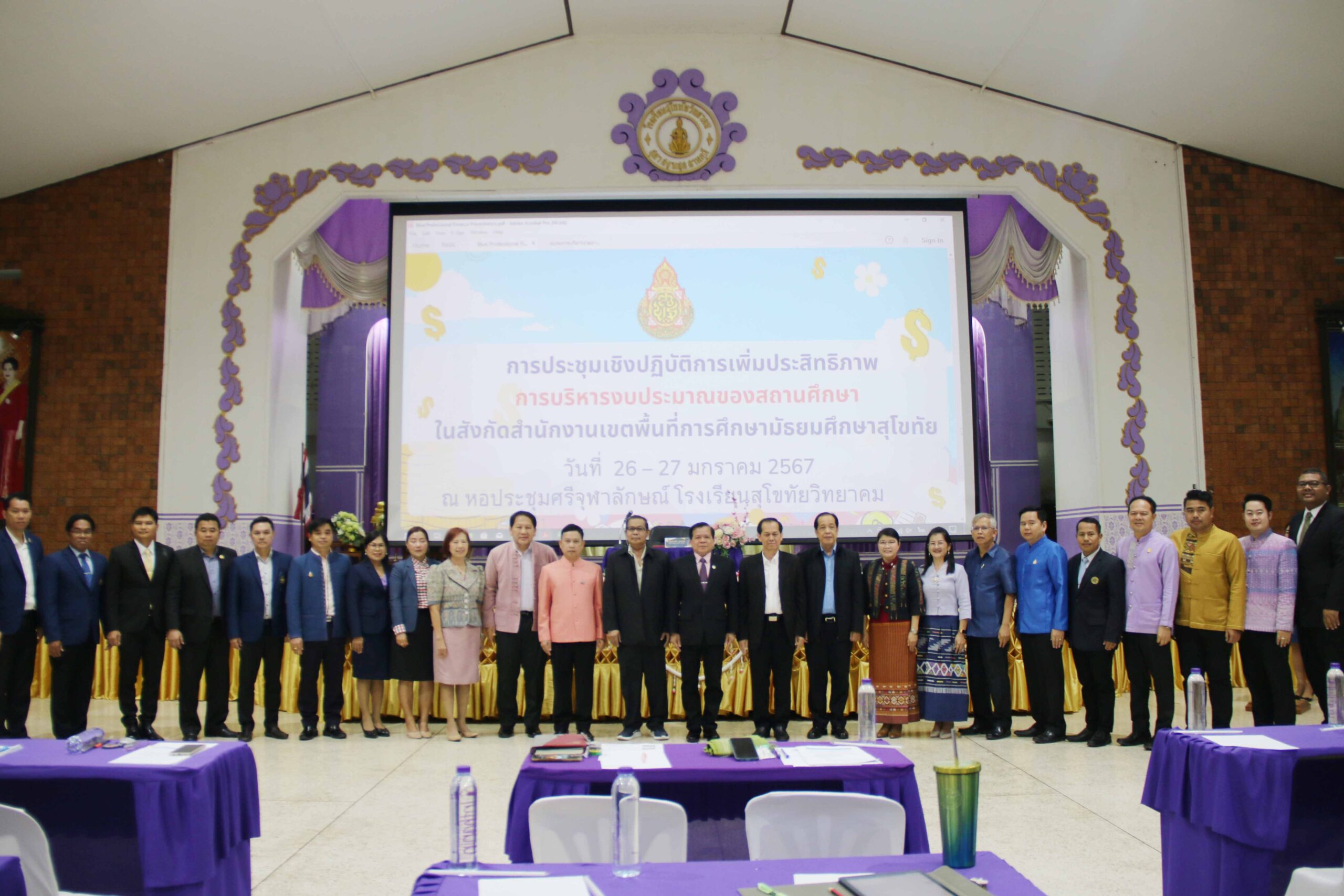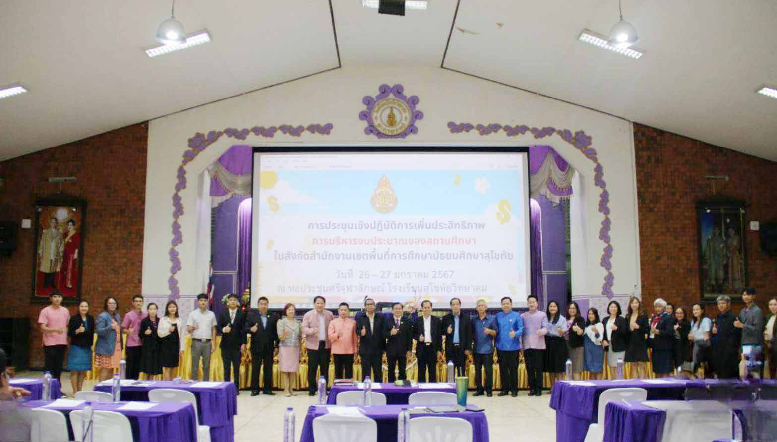 นายสุดเขต สวยสม ผู้อำนวยการสำนักงานเขตพื้นที่การศึกษามัธยมศึกษาสุโขทัย เป็นประธานการประชุมเชิงปฏิบัติการ “การเพิ่มประสิทธิภาพการบริหารงบประมาณของสถานศึกษา” ในสังกัดสำนักงานเขตพื้นที่การศึกษามัธยมศึกษาสุโขทัย พร้อมด้วยนายวัลลภ เอี่ยมมะ รองผู้อำนวยการสำนักงานเขตพื้นที่การศึกษามัธยมศึกษาสุโขทัย โดยมีคณะผู้บริหารสถานศึกษา ครูผู้ปฏิบัติงานพัสดุ บัญชี การเงิน เข้าร่วมประชุมฯ โดยนายสุรินทร์ สว่างอารมณ์ ปรึกษาพิเศษ สำนักนโยบายและแผน สพฐ. นายคำภา หานะกูล นายช่างโยธา สพฐ. นายวันชัย ธงชัย ที่ปรึกษาพิเศษ สำนักคลังและสินทรัพย์ สพฐ. นางสาวเพ็ญจันทร์ มั่นคง นักวิชาการการเงินและบัญชี ปฏิบัติหน้าที่หัวหน้าเจ้าหน้าที่พัสดุ สพม.สุโขทัย นางจิรโรจน์ จิระเจริญวงศ์ ผู้อำนวยการกลุ่มนโยบายและแผน สพม.สุโขทัย และคณะฯ และนางสาวรัตติกาล ทิพย์โหมด และนางสาวจำลองลักษณ์ ซอกผา นักวิชาการตรวจสอบภายใน สพม.สุโขทัย เป็นวิทยากรให้ความรู้ ณ ห้องประชุมศรีจุฬาลักษณ์ โรงเรียนสุโขทัยวิทยาคม อ.เมือง จ.สุโขทัย (วันที่ 27 มกราคม 2567)