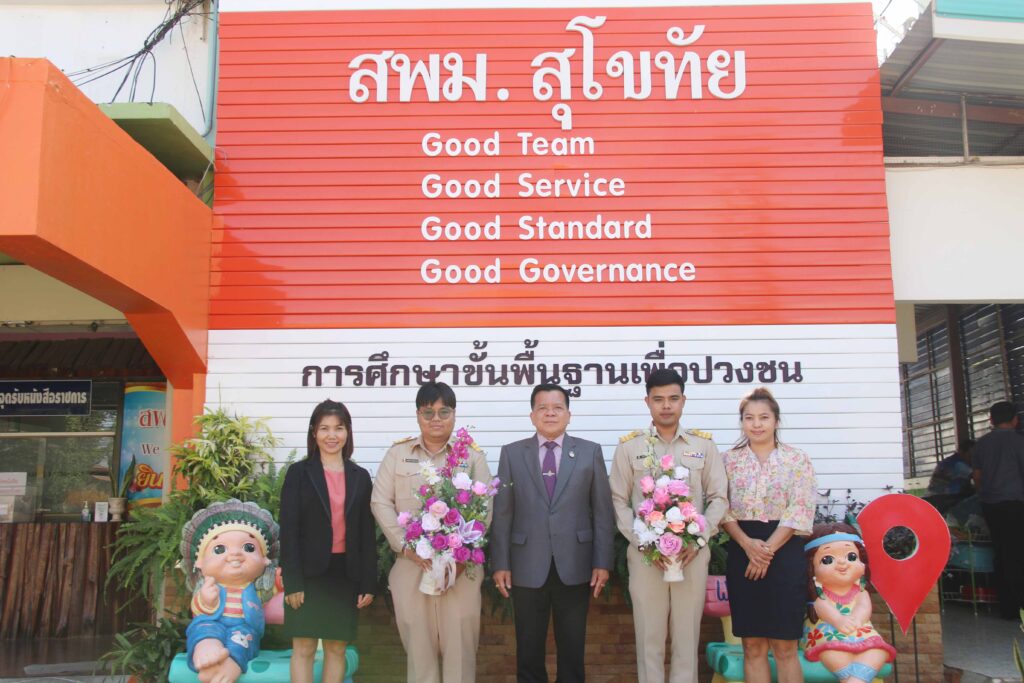 นายสุดเขต สวยสม ผู้อำนวยการสำนักงานเขตพื้นที่การศึกษามัธยมศึกษาสุโขทัย ปฐมนิเทศ และให้ข้อคิดในการปฏิบัติหน้าที่ราชการ กับผู้ที่ได้รับการบรรจุและแต่งตั้งให้ดำรงตำแหน่ง ครูผู้ช่วย จำนวน 2 ราย ได้แก่นายนพรัตน์ ศรีสุวรรณ กลุ่มวิชาเอกเกษตรกรรม โรงเรียนศรีนคร และนายศักดิ์ดา ภูยิ้ม กลุ่มวิชาเอกดนตรีไทย โรงเรียนบ้านด่านลานหอยวิทยา ณ สำนักงานเขตพื้นที่การศึกษามัธยมศึกษาสุโขทัย (วันที่ 1 กุมภาพันธ์ 2567)