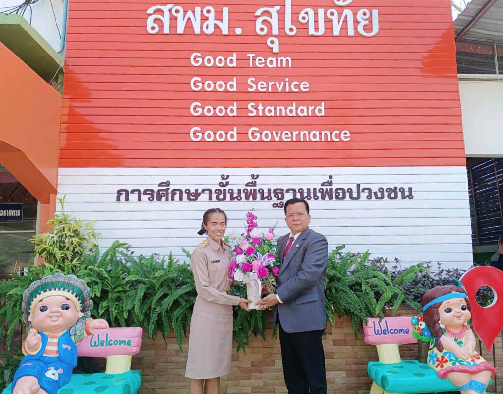 นายสุดเขต สวยสม ผู้อำนวยการสำนักงานเขตพื้นที่การศึกษามัธยมศึกษาสุโขทัย ปฐมนิเทศ และให้ข้อคิดในการปฏิบัติหน้าที่ราชการ กับผู้ที่ได้รับการบรรจุและแต่งตั้งให้ดำรงตำแหน่ง ครูผู้ช่วย จำนวน 2 ราย ได้แก่นางสาวอัญชุลีกร เตจา กลุ่มวิชาเอกนาฎศิลป์ โรงเรียนคีรีมาศพิทยาคม และนางสาวศิรดา เสลา กลุ่มวิชาเอกนาฎศิลป์ โรงเรียนศรีนคร ณ สำนักงานเขตพื้นที่การศึกษามัธยมศึกษาสุโขทัย (วันที่ 7 กุมภาพันธ์ 2567)