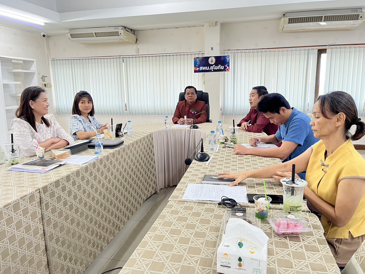 นายสุดเขต สวยสม ผู้อำนวยการสำนักงานเขตพื้นที่การศึกษามัธยมศึกษาสุโขทัย พร้อมด้วยนายศราวุธ คำแก้ว รองผู้อำนวยการสำนักงานเขตพื้นที่การศึกษามัธยมศึกษาสุโขทัย และคณะกรรมการแก้ไขปัญหาหนี้สินข้าราชการครูและบุคลากรทางการศึกษาฯ เข้าร่วมประชุมขับเคลื่อนสถานีแก้หนี้สำนักงานเขตพื้นที่การศึกษา เพื่อดำเนินการขับเคลื่อนแก้ไขปัญหาหนี้สินครูและบุคลากรทางการศึกษา ให้ดำเนินงานได้อย่างมีประสิทธิภาพ และต่อเนื่อง ประชุมผ่านระบบออนไลน์ Zoom Meeting ณ ห้องประชุมเจ้าราม สำนักงานเขตพื้นที่การศึกษามัธยมศึกษาสุโขทัย (วันที่ 9 กุมภาพันธ์ 2567)
