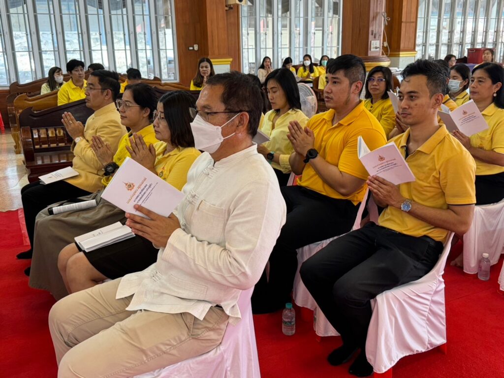 นายสุดเขต สวยสม ผู้อำนวยการสำนักงานเขตพื้นที่การศึกษามัธยมศึกษาสุโขทัย มอบหมายให้ นายศราวุธ คำแก้ว รองผู้อำนวยการสำนักงานเขตพื้นที่การศึกษามัธยมศึกษาสุโขทัย และกลุ่มส่งเสริมการจัดการศึกษา เข้าร่วมพิธีเจริญพระพุทธมนต์ เฉลิมพระเกียรติถวายพระพรชัยมงคลแด่ พระบาทสมเด็จพระเจ้าอยู่หัว เนื่องในโอกาสวันเฉลิมพระชนมพรรษา 6 รอบ 72 พรรษา วันที่ 28 กรกฎาคม 2567 โดยมีนางสงวน มะเสนา รองผู้ว่าราชการจังหวัดสุโขทัย เป็นประธานในพิธี เพื่อส่งเสริมให้พสกนิกรทุกหมู่เหล่าร่วมกันทำความดี ถวายพระราชกุศล แสดงออกถึงความจงรักภักดี ต่อสถาบันพระมหากษัตริย์ และสำนึกในพระมหากรุณาธิคุณ ที่พระองค์ได้ทรงบำเพ็ญพระราชกรณียกิจนานัปการ ยังความร่มเย็นเป็นสุขแก่ปวงชนชาวไทย ณ วัดกระชงคาราม ตำบลบ้านหลุม อำเภอเมืองสุโขทัย จังหวัดสุโขทัย (วันที่ 28 กุมภาพันธ์ 2567)