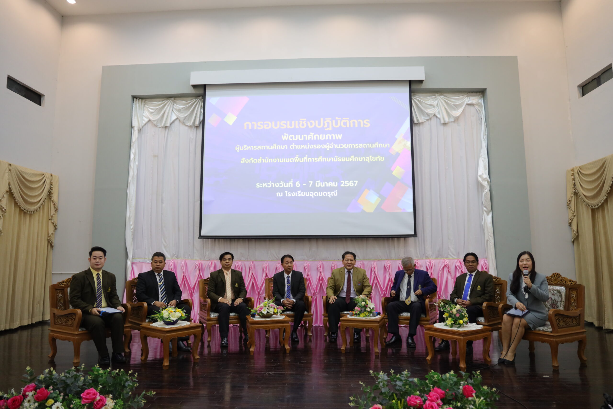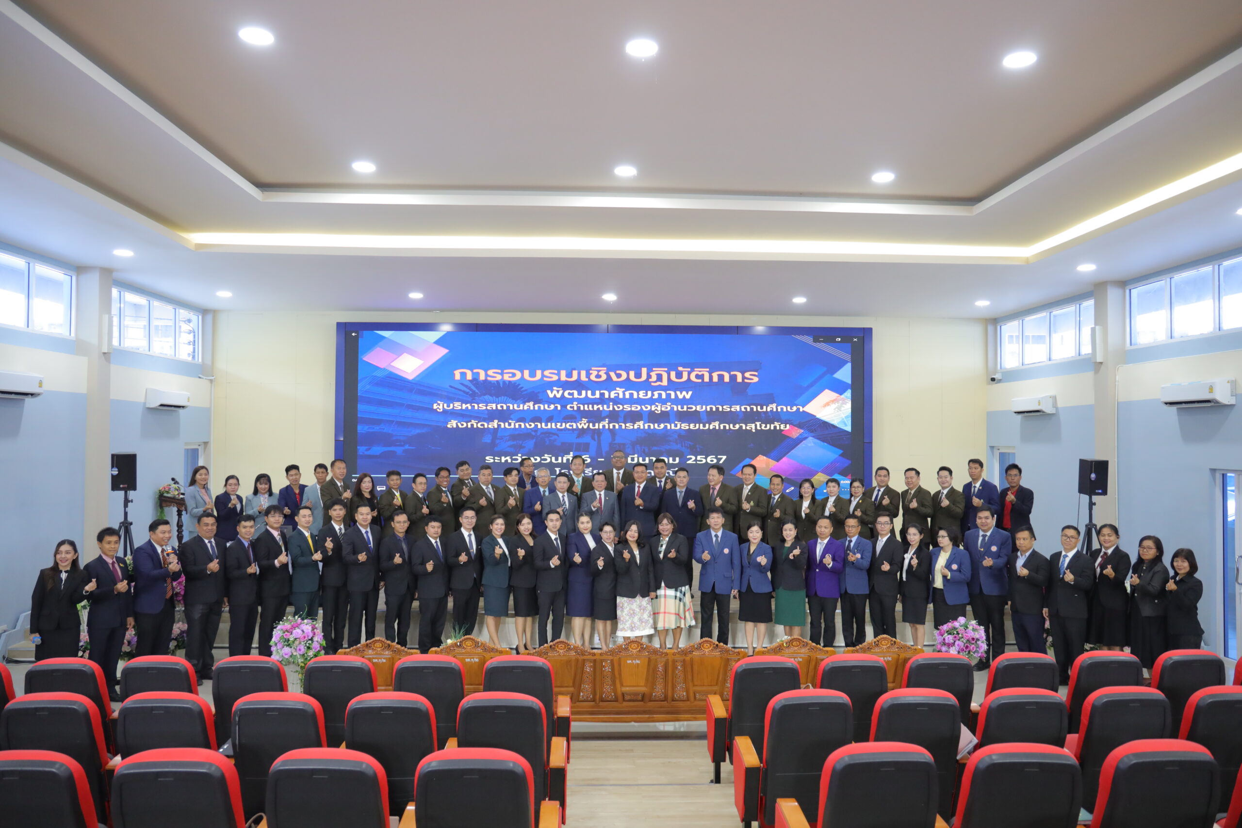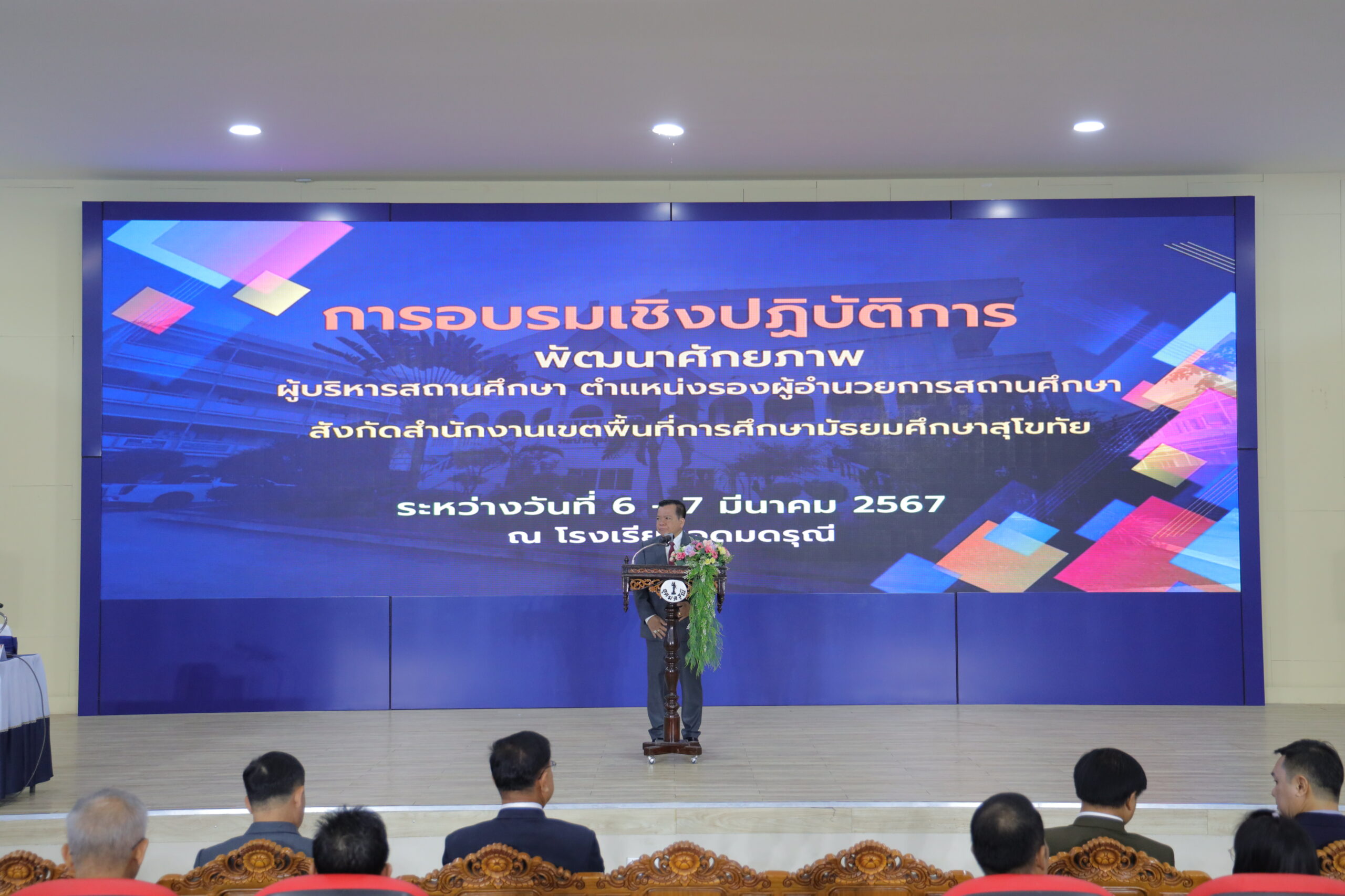 สำนักงานเขตพื้นที่การศึกษามัธยมศึกษาสุโขทัย จัดอบรมเชิงปฏิบัติการพัฒนาศักยภาพผู้บริหารสถานศึกษา ตำแหน่งรองผู้อำนวยการสถานศึกษา สังกัดสำนักงานเขตพื้นที่การศึกษามัธยมศึกษาสุโขทัย เพื่อเสริมสร้างและพัฒนาศักยภาพ ในการปฏิบัติหน้ที่ของผู้บริหารสถานศึกษาให้มีประสิทธิภาพและประสิทธิผล โดยมีนายสุดเขต สวยสม ผู้อำนวยการสำนักงานเขตพื้นที่การศึกษามัธยมศึกษาสุโขทัย เป็นประธาน และได้รับเกียรติจาก ดร.บัญชร จันทร์ดา อดีตผู้อำนวยการเชี่ยวชาญโรงเรียนอุตรดิตถ์ นายอรุณ หอมชื่น อดีตรองผู้อำนวยการชำนาญการพิเศษโรงเรียนเมืองเชลียง และผู้อำนวยการ สถานศึกษา ในสังกัดสำนักงานเขตพื้นที่การศึกษามัธยมศึกษาสุโขทัย มาเป็นวิทยากรให้ความรู้ ระหว่างวันที่ 6 – 7 มีนาคม 2567 ณ โรงเรียนอุดมดรุณี อ.เมือง จ.สุโขทัย (วันที่ 7 มีนาคม 2567)