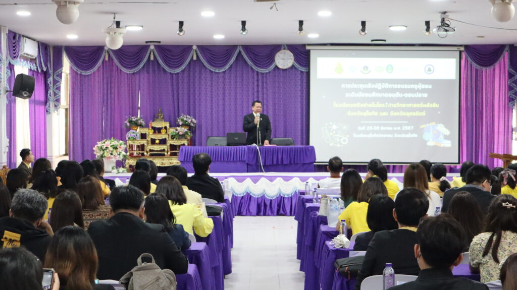นายสุดเขต สวยสม ผู้อำนวยการสำนักงานเขตพื้นที่การศึกษามัธยมศึกษาสุโขทัย เป็นประธานเปิดการประชุมเชิงปฏิบัติการอบรมครูผู้สอนโรงเรียนเครือข่ายในโครงการวิทยาศาสตร์พลังสิบ วันที่ 25 – 26 มีนาคม 2567 โดยนายไพบูลย์ พวงเงิน ผู้อำนวยการโรงเรียนสุโขทัยวิทยาคม กล่าวรายงาน มีผู้เข้าร่วมอบรมเป็นครูผู้สอนโรงเรียนเครือข่าย ทั้งหมด 88 คน จำนวน 7 สาขา ดังนี้ สาขาวิทยาศาสตร์ สาขาฟิสิกส์ สาขาเคมี สาขาชีววิทยา สาขาดาราศาสตร์ สาขาคณิตศาสตร์ และสาขาเทคโนโลยี เพื่อพัฒนาครูสู่ความเป็นเลิศทางวิทยศาตร์ตามหลักสูตรวิทยาศาสตร์พลังสิบ จัดโดยโรงเรียนสุโขทัยวิทยาคมร่วมกับสำนักงานเขตพื้นที่การศึกษามัธยมศึกษาสุโขทัย ณ อาคารเกียรติยศ 109 ปี โรงเรียนสุโขทัยวิทยาคม (25 มีนาคม 2567)