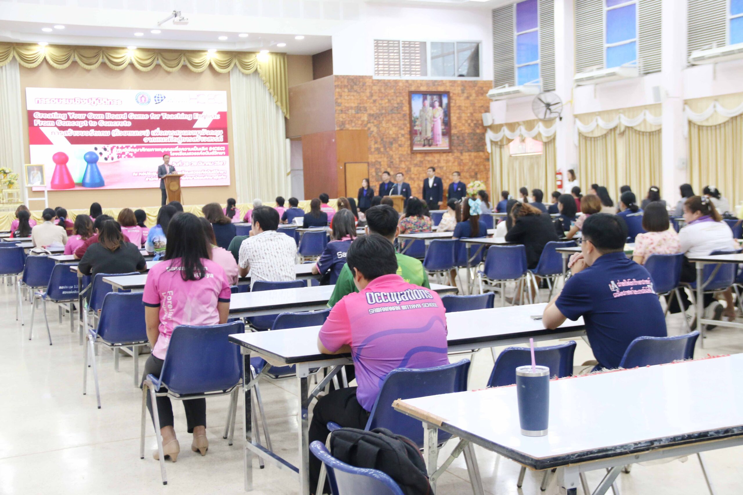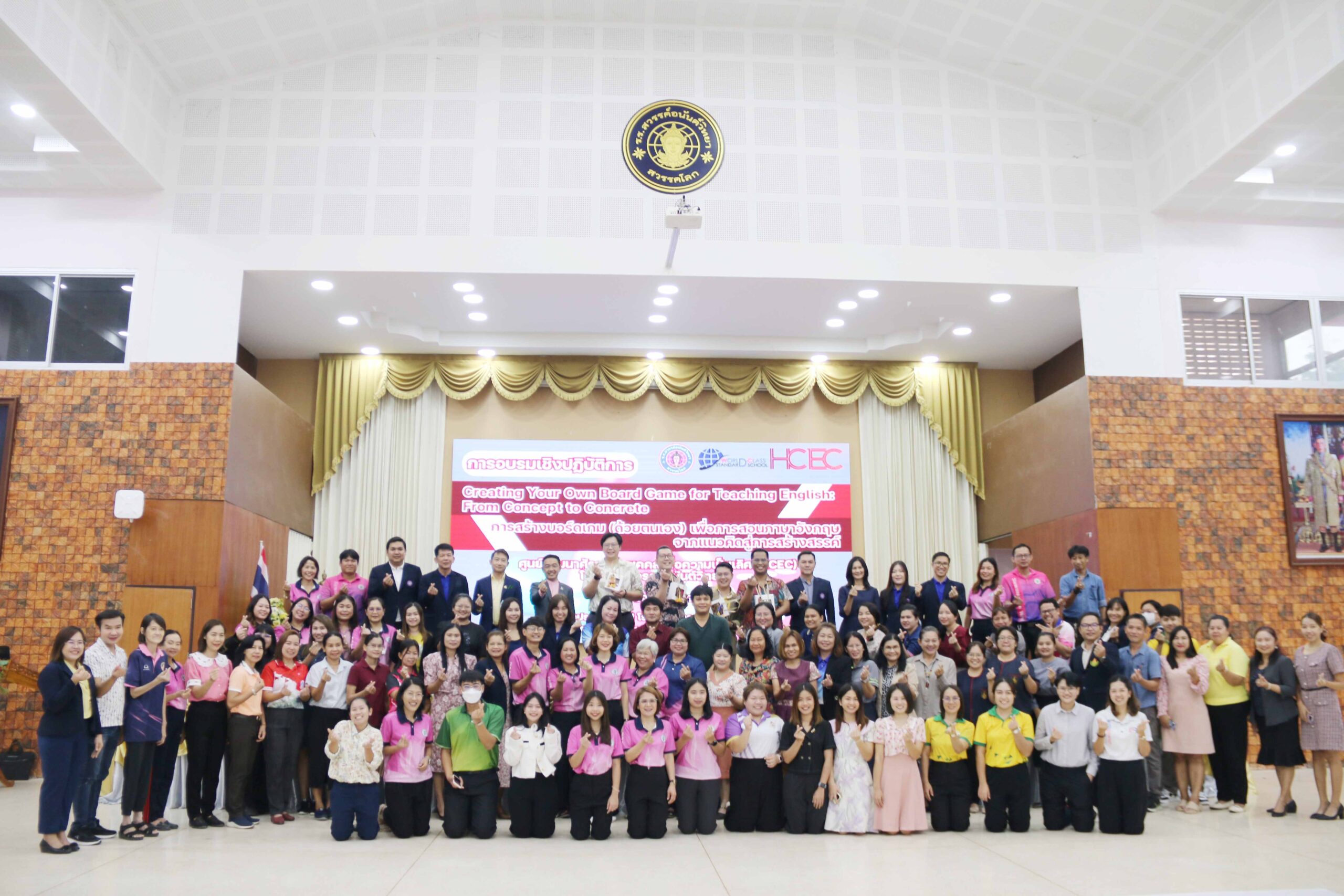 นายสุดเขต สวยสม ผู้อำนวยการสำนักงานเขตพื้นที่การศึกษามัธยมศึกษาสุโขทัย มอบหมายให้นายศราวุธ คำแก้ว รองผู้อำนวยการสำนักงานเขตพื้นที่การศึกษามัธยมศึกษาสุโขทัย เป็นประธาน เปิดการอบรมเชิงปฏิบัติการการสร้างบอร์ดเกม (ด้วยตนเอง) เพื่อการสอนภาษาอังกฤษจากแนวคิดสู่ การสร้างสรรค์ Creating Your Own Board Game for Teaching English : From Concept to Concrete ศูนย์พัฒนาศักยภาพบุคคลเพื่อความเป็นเลิศ (HCEC) โรงเรียนสวรรค์อนันต์วิทยา วันที่ 28-29 มีนาคม 2567 พร้อมด้วยนางวริศรา ณีศะนันท์ ศึกษานิเทศชำนาญการพิเศษ และกลุ่มพัฒนาครูฯ ณ หอประชุม 123 ปี โรงเรียนสวรรค์อนันต์วิทยา (วันที่ 28 มีนาคม 2567)