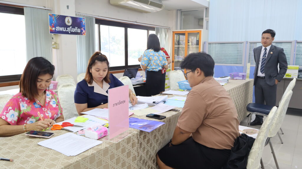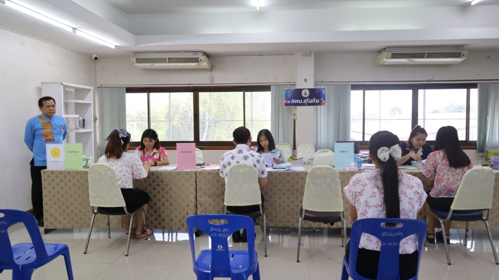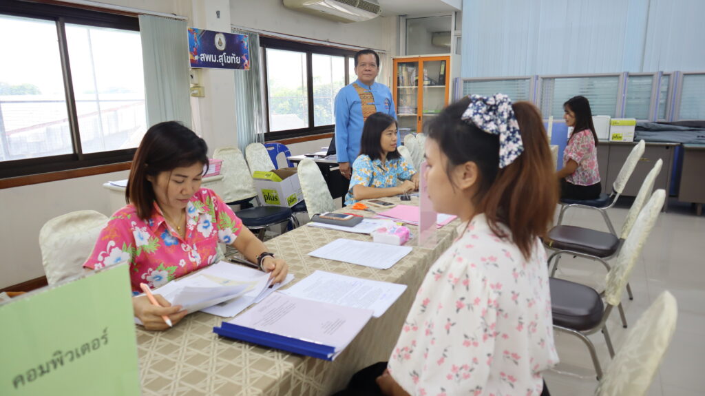 นายสุดเขต สวยสม ผู้อำนวยการสำนักงานเขตพื้นที่การศึกษามัธยมศึกษาสุโขทัย พร้อมด้วยนายวัลลภ เอี่ยมมะ รองผู้อำนวยการสำนักงานเขตพื้นที่การศึกษามัธยมศึกษาสุโขทัย ตรวจเยี่ยมความเรียบร้อย ให้กำลังใจคณะกรรมการรับสมัครฯและผู้สมัครสอบ ตลอดจนติดตามความคืบหน้า รับฟังปัญหา/อุปสรรค การรับสมัครคัดเลือกบุคคลเพื่อบรรจุและแต่งตั้งเข้ารับราชการเป็นข้าราชการครูและบุคลากรทางการศึกษา ตำแหน่งครูผู้ช่วย กรณีที่มีความจำเป็นหรือมีเหตุพิเศษ สังกัด สพฐ. ปี พ.ศ.2567 ทั้งนี้เป็นไปด้วยความเรียบร้อย โปร่งใส สามารถตรวจสอบได้ ณ ห้องประชุมเจ้าราม ชั้น 3 สพม.สุโขทัย (วันที่ 5 เมษายน 2567)
