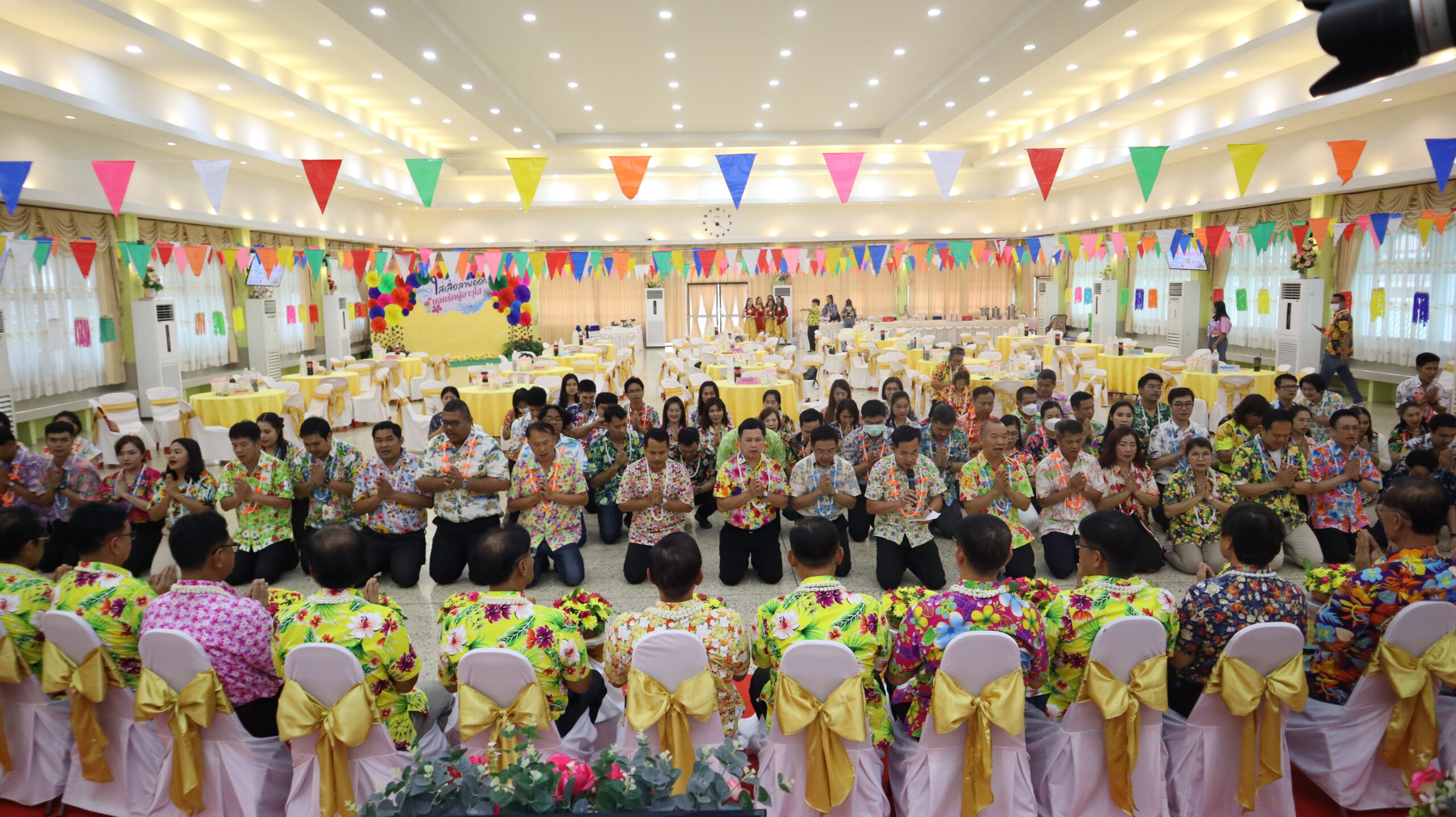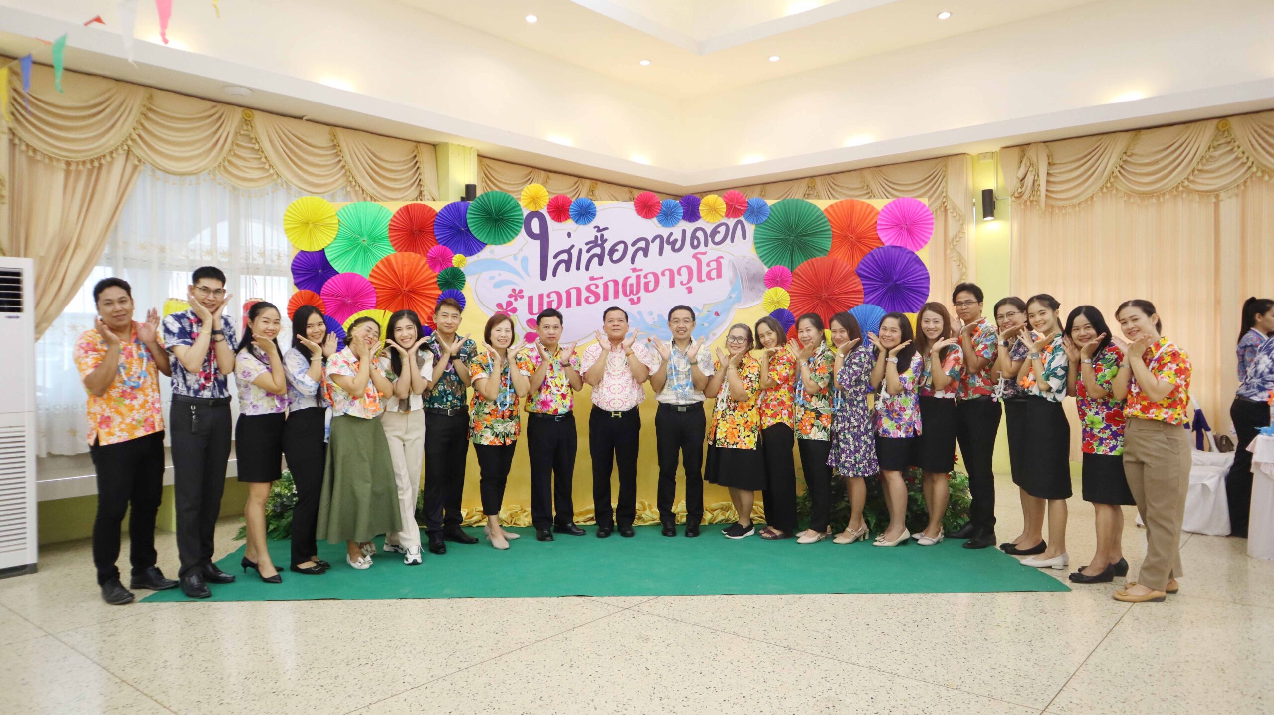 นายสุดเขต สวยสม ผู้อำนวยการสำนักงานเขตพื้นที่การศึกษามัธยมศึกษาสุโขทัย พร้อมด้วยนายศราวุธ คำแก้ว นายวัลลภ เอี่ยมมะ รองผู้อำนวยการสำนักงานเขตพื้นที่ การศึกษามัธยมศึกษาสุโขทัย คณะผู้บริหารสถานศึกษา รองผู้บริหารสถานศึกษา และบุคลากรทางการศึกษา ร่วมงานใส่เสื้อลายดอก บอกรักผู้อาวุโส เพื่อสืบสานวัฒนธรรมไทยประเพณีสงกรานต์และรับพรจากผู้อาวุโส ณ โรงเรียนอุดมดรุณี (วันที่ 9 เมษายน 2567)