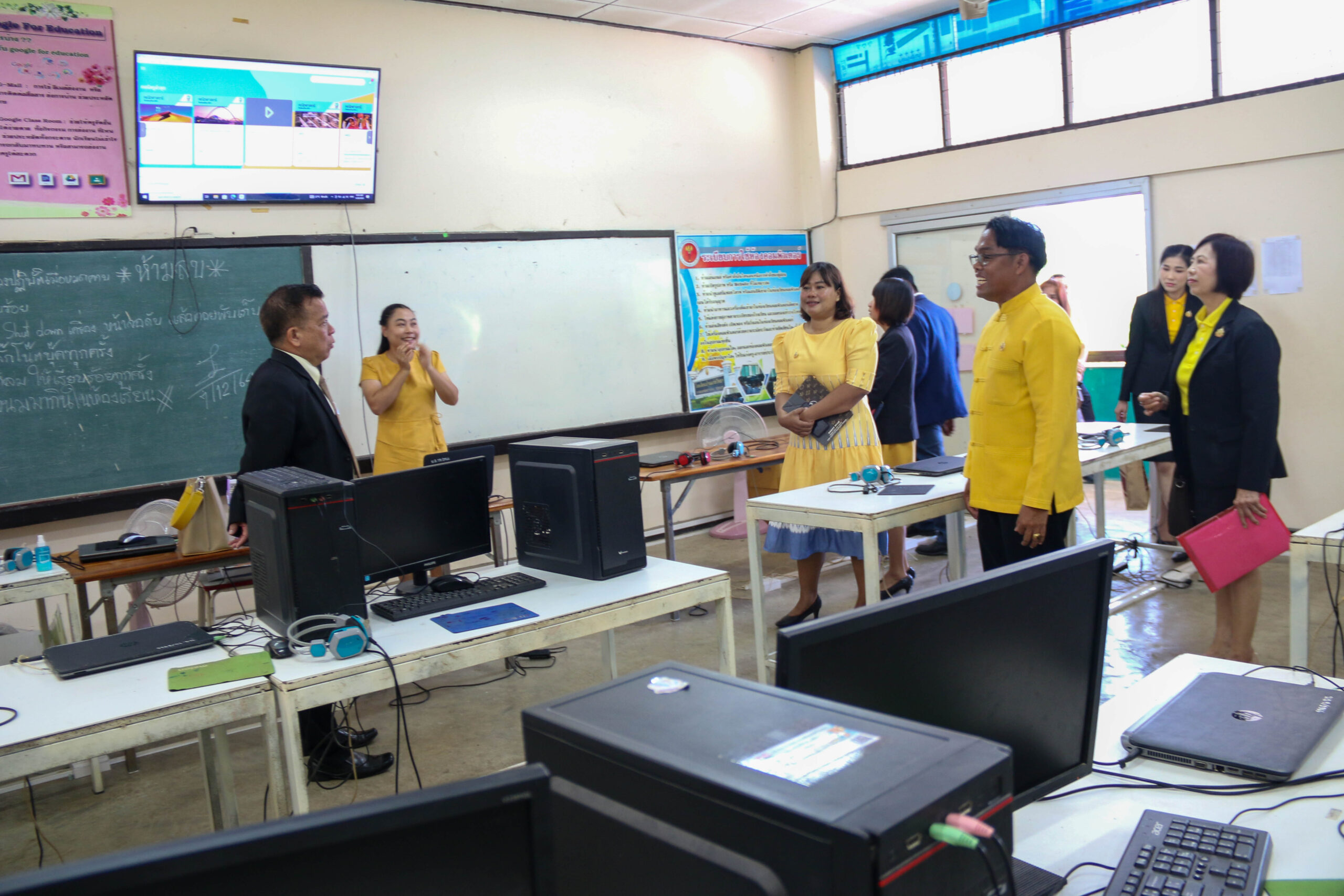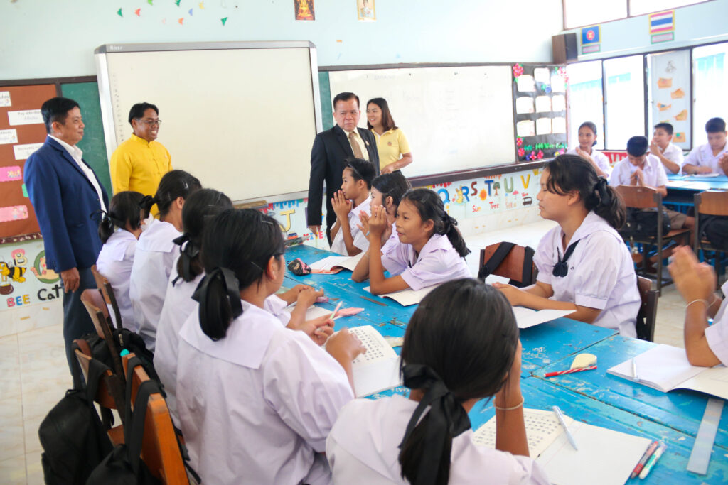 นายสุดเขต สวยสม ผู้อำนวยการสำนักงานเขตพื้นที่การศึกษามัธยมศึกษาสุโขทัย ผู้ทรงคุณวุฒิ ก.ต.ป.น. พร้อมด้วยศึกษานิเทศก์ และคณะกรรมการการนิเทศ ติดตาม ตรวจเยี่ยมฯ ลงพื้นที่นิเทศ ติดตาม ตรวจเยี่ยมการเปิดภาคเรียนที่ 1 ปีการศึกษา 2567 ตามแนวทางการขับเคลื่อนนโยบายและจุดเน้น องค์กรคุณภาพสร้างคนดีมีความสุข เพื่อให้ผู้เรียนเรียนดี มีความสุข และดำเนินงาน Quick Win ปีงบประมาณ 2567 และให้สถานศึกษาดูแลการมาเรียนของนักเรียน รวมถึงการดูแลนักเรียน ในสถานศึกษาให้มีความปลอดภัยในทุกมิติ การบริหารงาน 4 ฝ่าย ของโรงเรียน ด้านบริหารงานทั่วไป ด้านบริหารงานงบประมาณ ด้านบริหารงานบุคคล และด้านวิชาการ ของสหวิทยาเขตศรีสวรรค์ ณ โรงเรียนบ้านแก่งวิทยา (วันที่ 20 พฤษภาคม 2567)