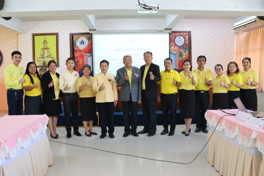 นายวัลลภ เอี่ยมมะ รองผู้อำนวยการสำนักงานเขตพื้นที่การศึกษามัธยมศึกษาสุโขทัย ผู้ทรงคุณวุฒิ ก.ต.ป.น. พร้อมด้วยศึกษานิเทศก์ และคณะกรรมการการนิเทศ ติดตาม ตรวจเยี่ยมฯ ลงพื้นที่นิเทศ ติดตาม ตรวจเยี่ยมการเปิดภาคเรียนที่ 1 ปีการศึกษา 2567 ตามแนวทางการขับเคลื่อนนโยบายและจุดเน้น องค์กรคุณภาพสร้างคนดีมีความสุข เพื่อให้ผู้เรียนเรียนดี มีความสุข และดำเนินงาน Quick Win ปีงบประมาณ 2567 และให้สถานศึกษาดูแลการมาเรียนของนักเรียน รวมถึงการดูแลนักเรียน ในสถานศึกษาให้มีความปลอดภัยในทุกมิติ การบริหารงาน 4 ฝ่ายของโรงเรียน ด้านบริหารงานทั่วไป ด้านบริหารงานงบประมาณ ด้านบริหารงานบุคคล และด้านวิชาการ ของสหวิทยาเขตพระแม่ย่า ณ โรงเรียนกงไกรลาศวิทยา (วันที่ 20 พฤษภาคม 2567)