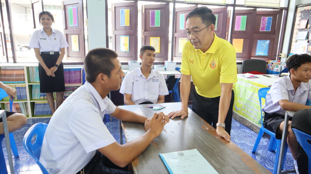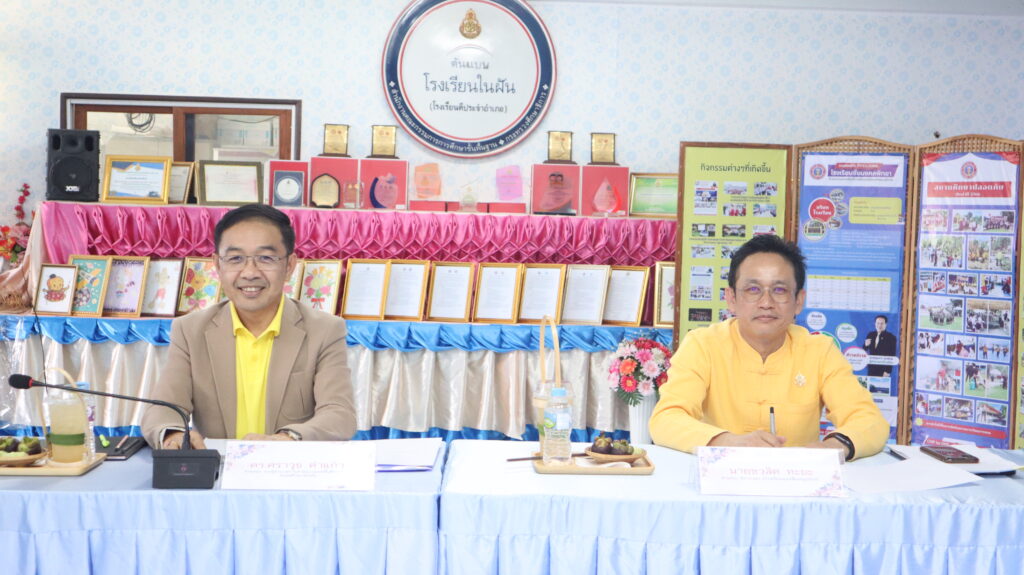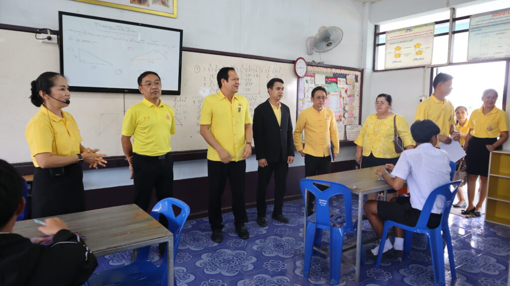 นายศราวุธ คำแก้ว รองผู้อำนวยการสำนักงานเขตพื้นที่การศึกษามัธยมศึกษาสุโขทัย ผู้ทรงคุณวุฒิ ก.ต.ป.น. พร้อมด้วยศึกษานิเทศก์ และคณะกรรมการการนิเทศ ติดตาม ตรวจเยี่ยมฯ ลงพื้นที่นิเทศ ติดตาม ตรวจเยี่ยมการเปิดภาคเรียนที่ 1 ปีการศึกษา 2567 ตามแนวทางการขับเคลื่อนนโยบายและจุดเน้น องค์กรคุณภาพสร้างคนดีมีความสุข เพื่อให้ผู้เรียนเรียนดี มีความสุข และดำเนินงาน Quick Win ปีงบประมาณ 2567 และให้สถานศึกษาดูแลการมาเรียนของนักเรียน รวมถึงการดูแลนักเรียน ในสถานศึกษาให้มีความปลอดภัยในทุกมิติ การบริหารงาน 4 ฝ่ายของโรงเรียน ด้านบริหารงานทั่วไป ด้านบริหารงานงบประมาณ ด้านบริหารงานบุคคล และด้านวิชาการ ของสหวิทยาเขตพระร่วง ณ โรงเรียนชัยมงคลพิทยา (วันที่ 20 พฤษภาคม 2567)