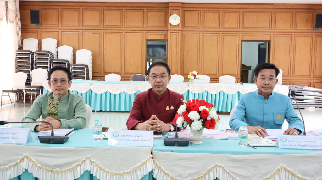 นายศราวุธ คำแก้ว รองผู้อำนวยการสำนักงานเขตพื้นที่การศึกษามัธยมศึกษาสุโขทัย ผู้ทรงคุณวุฒิ ก.ต.ป.น. พร้อมด้วยศึกษานิเทศก์ และคณะกรรมการการนิเทศ ติดตาม ตรวจเยี่ยมฯ ลงพื้นที่นิเทศ ติดตาม ตรวจเยี่ยมการเปิดภาคเรียนที่ 1 ปีการศึกษา 2567 ตามแนวทาง การขับเคลื่อนนโยบายและจุดเน้น องค์กรคุณภาพสร้างคนดีมีความสุข เพื่อให้ผู้เรียนเรียนดี มีความสุข และดำเนินงาน Quick Win ปีงบประมาณ 2567 และให้สถานศึกษาดูแลการมาเรียนของนักเรียน รวมถึงการดูแลนักเรียน ในสถานศึกษาให้มีความปลอดภัยในทุกมิติ การบริหารงาน 4 ฝ่ายของโรงเรียน ด้านบริหารงานทั่วไป ด้านบริหารงานงบประมาณ ด้านบริหารงานบุคคล และด้านวิชาการ ของสหวิทยาเขตพระร่วง ณ โรงเรียนศรีสำโรงชนูปถัมภ์ (วันที่ 24 พฤษภาคม 2567)