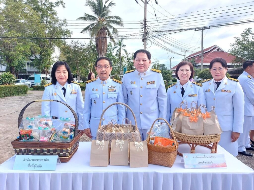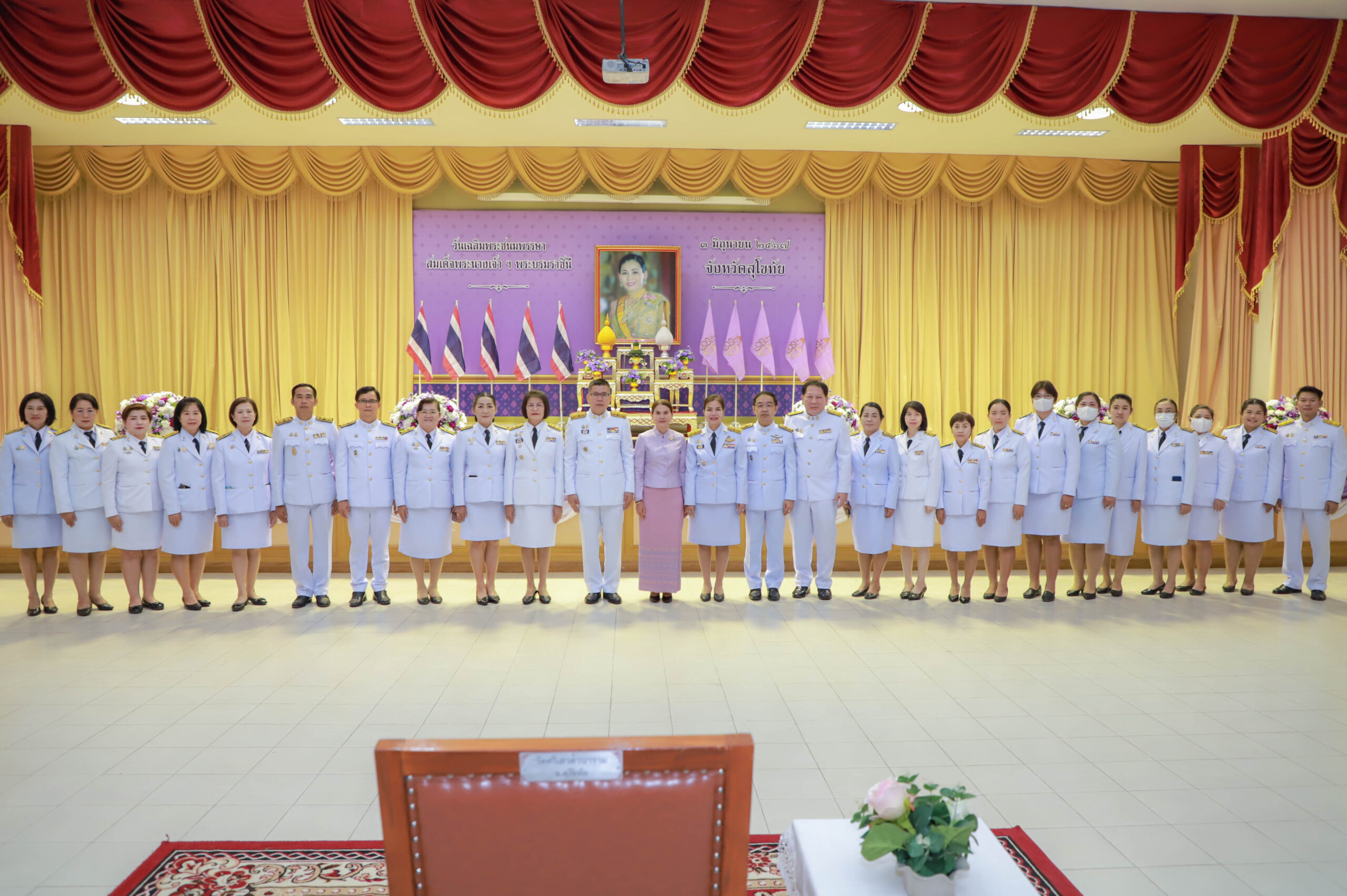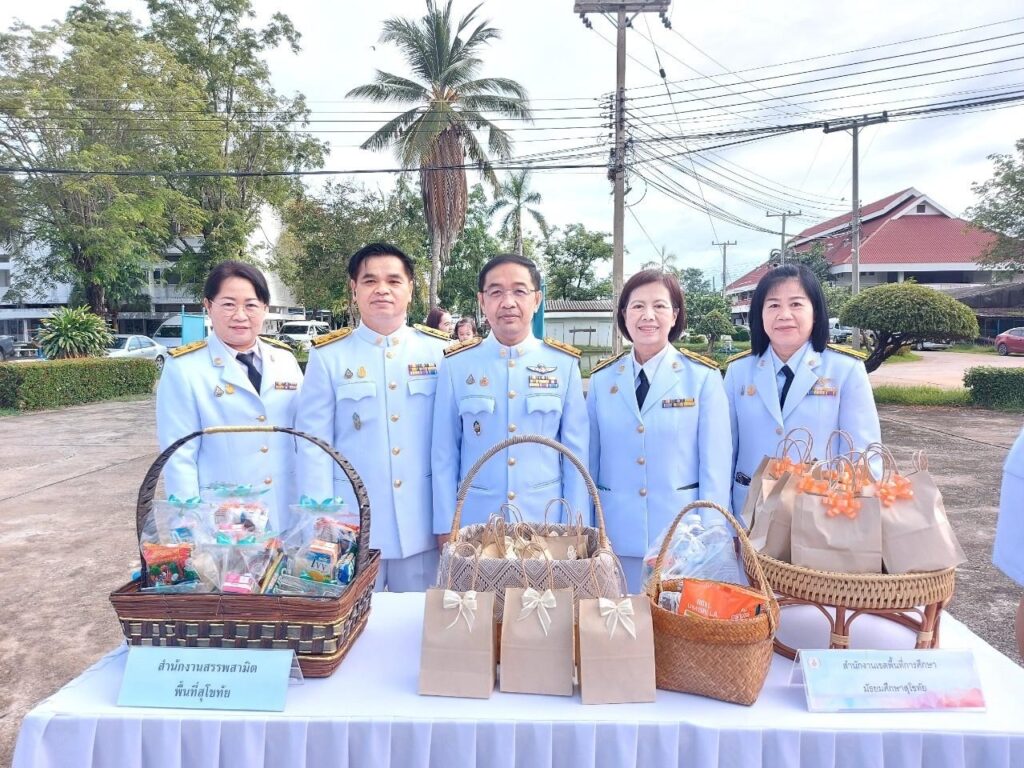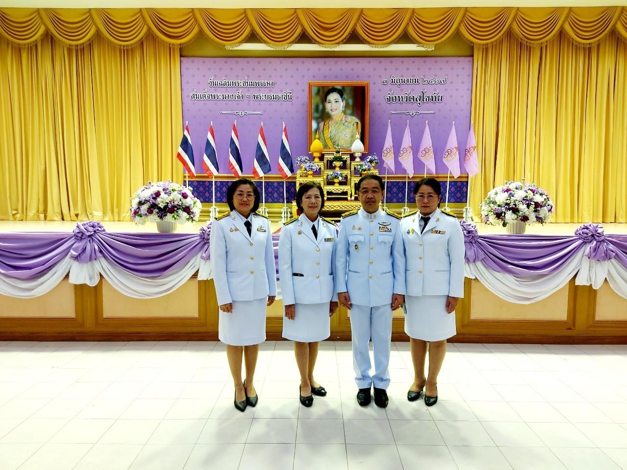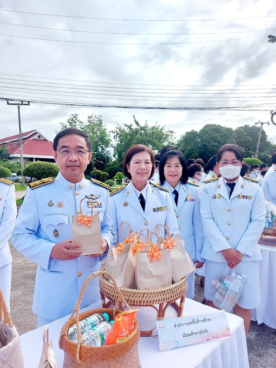 นายสุดเขต สวยสม ผู้อำนวยการสำนักงานเขตพื้นที่การศึกษามัธยมศึกษาสุโขทัย มอบหมายให้นายศราวุธ คำแก้ว รองผู้อำนวยการสำนักงานเขตพื้นที่การศึกษามัธยมศึกษาสุโขทัย พร้อมด้วยกลุ่มนโยบายและแผน เข้าร่วมพิธีทำบุญตักบาตรถวาย พระราชกุศล เฉลิมพระเกียรติ สมเด็จพระนางเจ้าฯ พระบรมราชินี โดยมีนายสุชาติ ทีคะสุข ผู้ว่าราชการจังหวัดสุโขทัย เป็นประธาน ในพิธี เพื่อถวายพระราชกุศล เฉลิมพระเกียรติสมเด็จพระนางเจ้าฯ พระบรมราชินี เนื่องในโอกาส วันเฉลิม พระชนมพรรษา 3 มิถุนายน 2567 ณ อาคารวรรณกลาง มหาวิทยาลัยการกีฬาแห่งชาติ วิทยาเขตสุโขทัย จังหวัดสุโขทัย (วันที่ 3 มิถุนายน 2567)