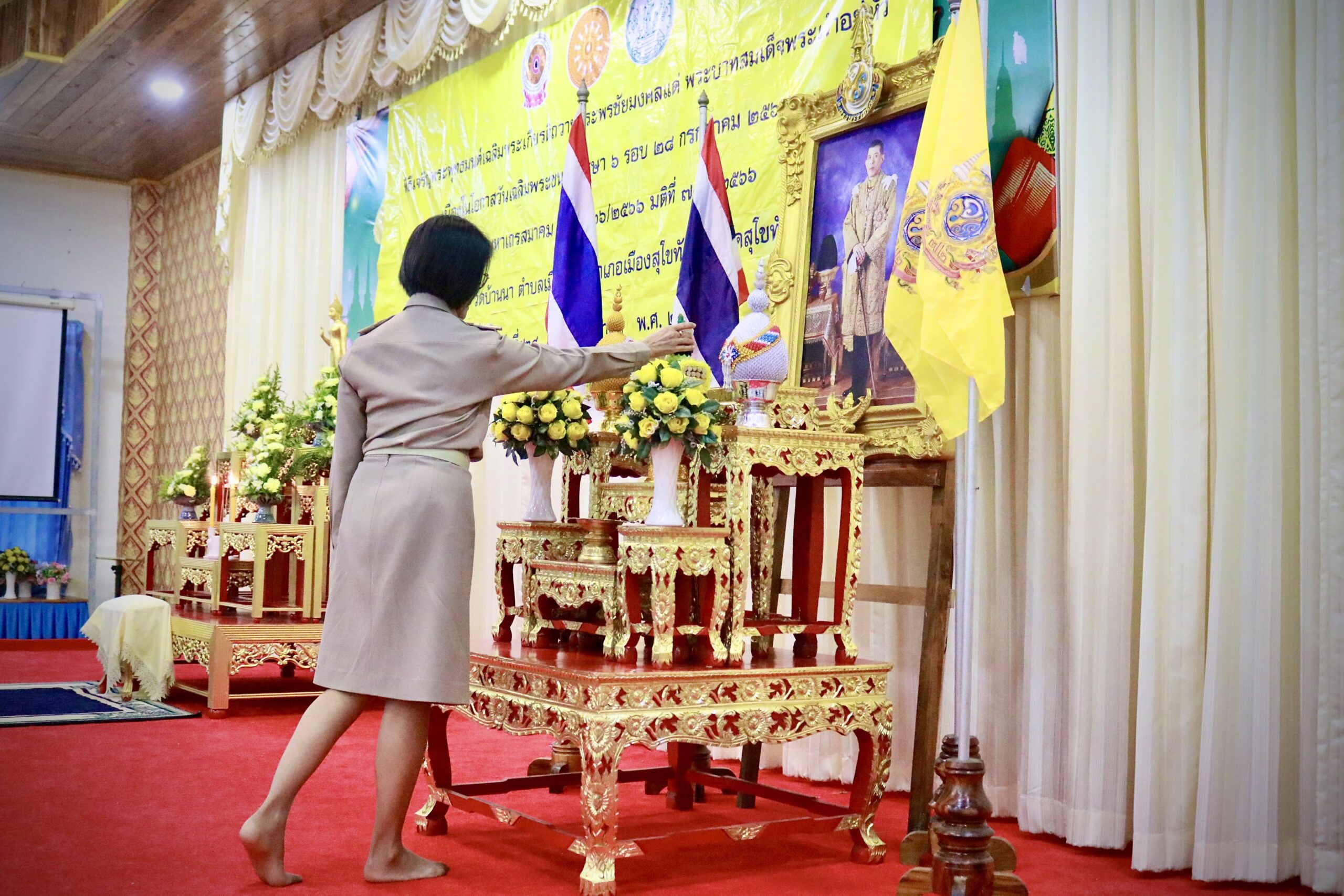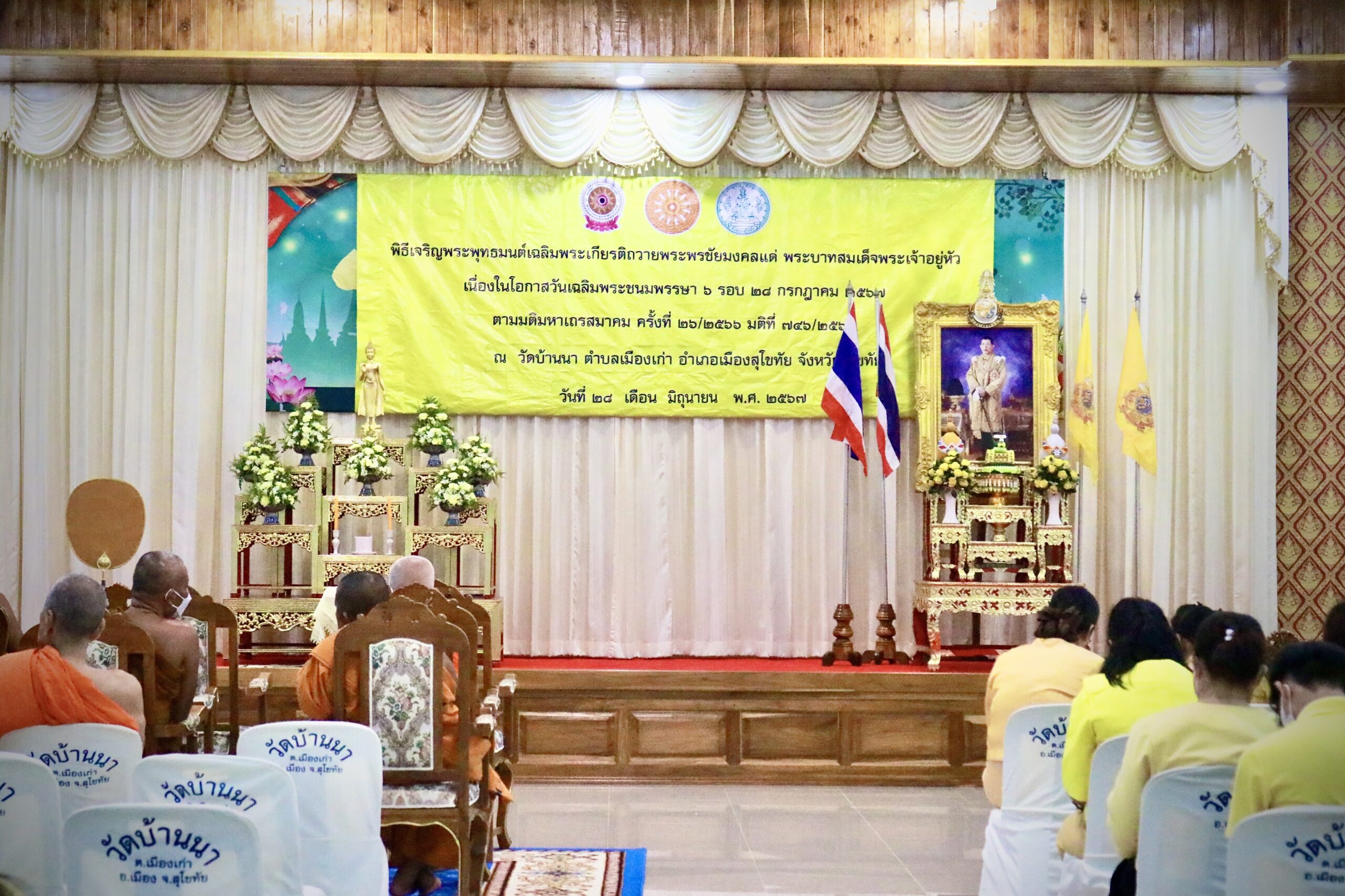 นายสุดเขต สวยสม ผู้อำนวยการสำนักงานเขตพื้นที่การศึกษามัธยมศึกษาสุโขทัย มอบหมายให้กลุ่มนโยบายและแผน เข้าร่วมพิธีเจริญพระพุทธมนต์ เฉลิมพระเกียรติถวาย พระพรชัยมงคลแด่พระบาทสมเด็จพระเจ้าอยู่หัว เนื่องในโอกาสวันเฉลิมพระชนมพรรษา 6 รอบ 72 พรรษา วันที่ 28 กรกฎาคม 2567เพื่อส่งเสริมให้พสกนิกรทุกหมู่เหล่าร่วมกันทำความดี ถวายพระราชกุศล แสดงออกถึงความจงรักภักดี ต่อสถาบันพระมหากษัตริย์ และสำนึกในพระมหากรุณาธิคุณ ที่พระองค์ได้ทรงบำเพ็ญพระราชกรณียกิจนานัปการ ยังความร่มเย็นเป็นสุข แก่ปวงชนชาวไทย ณ วัดบ้านนา ตำบลเมืองเก่า อำเภอเมืองสุโขทัย จังหวัดสุโขทัย (วันที่ 28 มิถุนายน 2567)