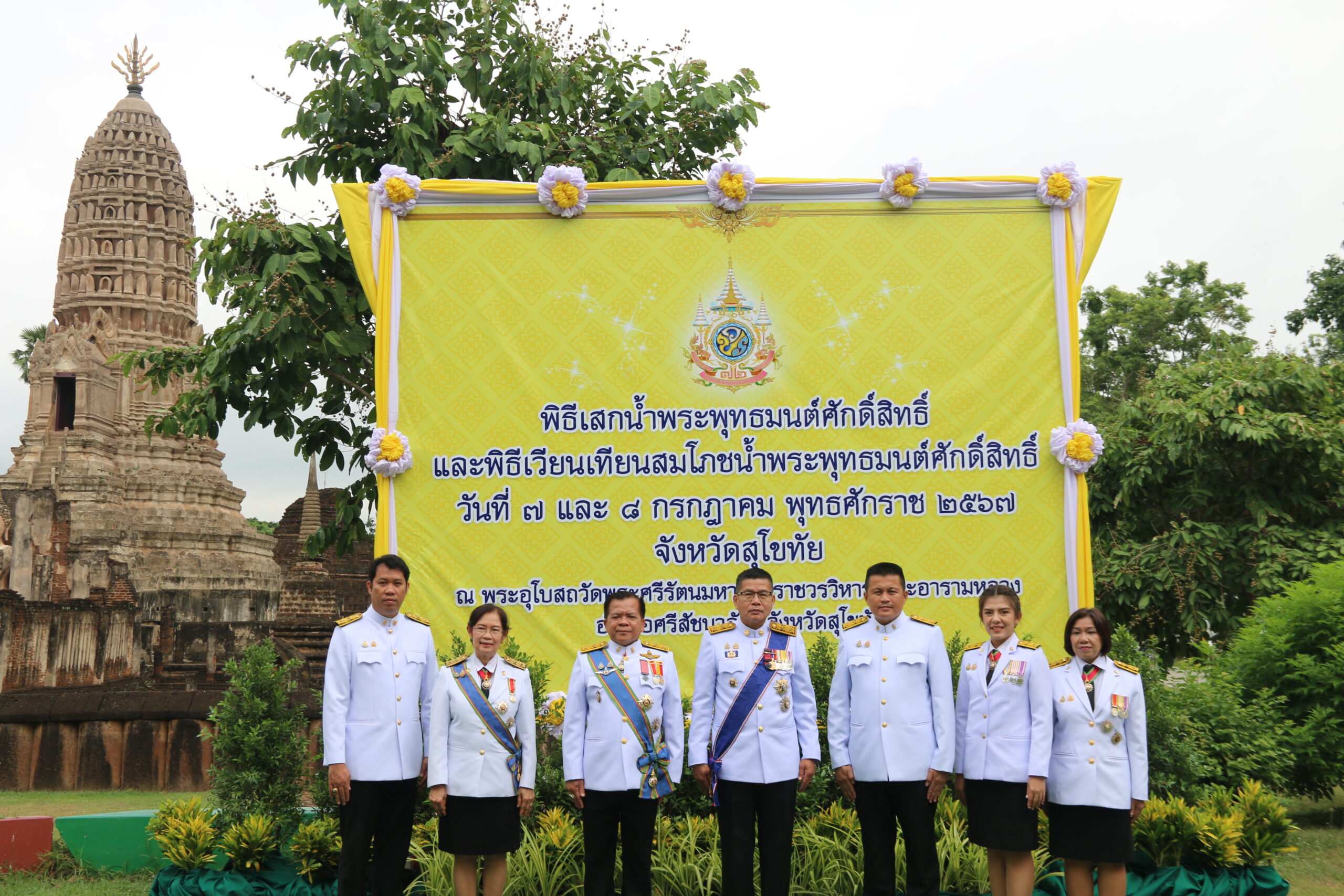 นายสุดเขต สวยสม ผู้อำนวยการสำนักงานเขตพื้นที่การศึกษามัธยมศึกษาสุโขทัย พร้อมด้วยกลุ่มกฎหมายและคดี และหน่วยตรวจสอบภายใน เข้าร่วมพิธีพิธีเวียนเทียนสมโภช น้ำพระพุทธมนต์ศักดิ์สิทธิ์ ณ พระอุโบสถ วัดพระศรีรัตนมหาธาตุราชวรวิหาร ตำบลศรีสัชนาลัย อำเภอศรีสัชนาลัย จังหวัดสุโขทัย โดยมีนายสุชาติ ทีคะสุข ผู้ว่าราชการจังหวัดสุโขทัย เป็นประธานประกอบพิธีฯ เพื่อจัดทำน้ำพระพุทธมนต์ศักดิ์สิทธิ์งานเฉลิมพระเกียรติพระบาทสมเด็จพระเจ้าอยู่หัว เนื่องในโอกาส พระราชพิธีมหามงคลเฉลิมพระชนมพรรษา 6 รอบ 28 กรกฎาคม 2567 (วันที่ 8 กรกฎาคม 2567)
