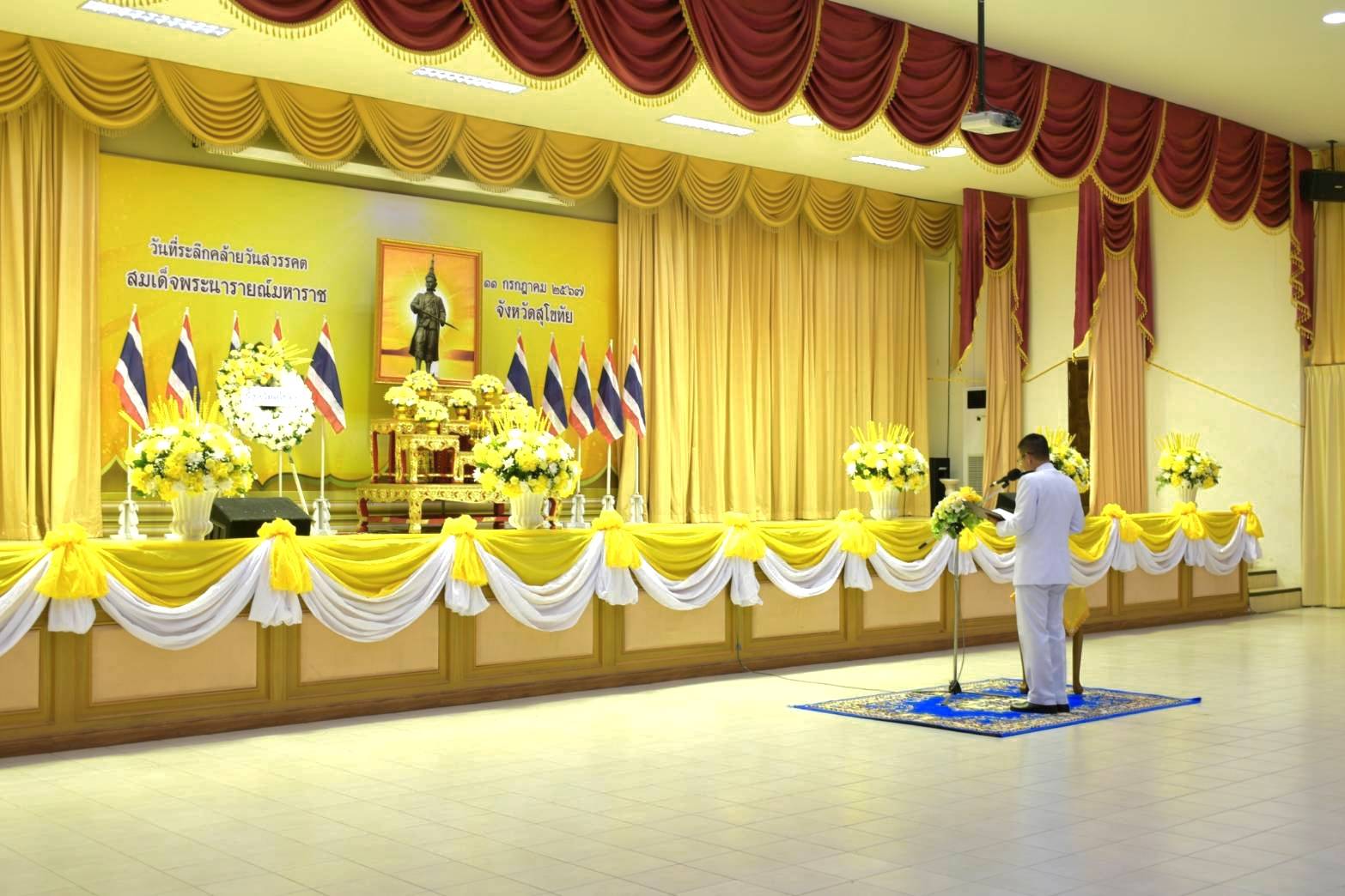 นายสุดเขต สวยสม ผู้อำนวยการสำนักงานเขตพื้นที่การศึกษามัธยมศึกษาสุโขทัย มอบหมายให้นายศราวุธ คำแก้ว รอผู้อำนวยการสำนักงานเขตพื้นที่การศึกษามัธยมศึกษาสุโขทัย พร้อมด้วยกลุ่มส่งเสริมการจัดการศึกษา เข้าร่วมงานรัฐพิธีวันที่ระลึกคล้ายวันสวรรคตสมเด็จพระนารายณ์มหาราช พิธีเจริญพระพุทธมนต์ พิธีวางพวงมาลา ถวายราชสักการะ กล่าวคำถวายราชสดุดี และพิธีทำบุญตักบาตรถวายพระราชกุศล โดยมีนายสุชาติ ทีคะสุข ผู้ว่าราชการจังหวัดสุโขทัย เป็นประธาน ณ อาคารวรรณกลาง มหาวิทยาลัยการกีฬาแห่งชาติ วิทยาเขตสุโขทัย (วันที่ 11 กรกฎาคม 2567)