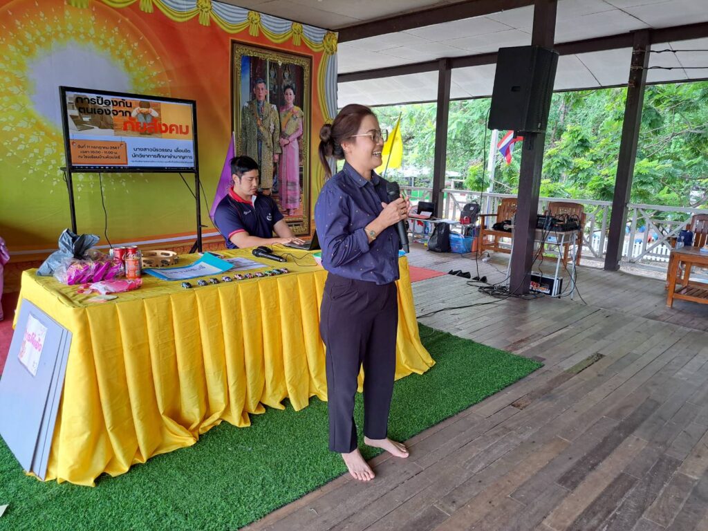 วิทยากรบรรยายให้ความรู้นักเรียน หัวข้อ การป้องกันตนเองจากภัยสังคม