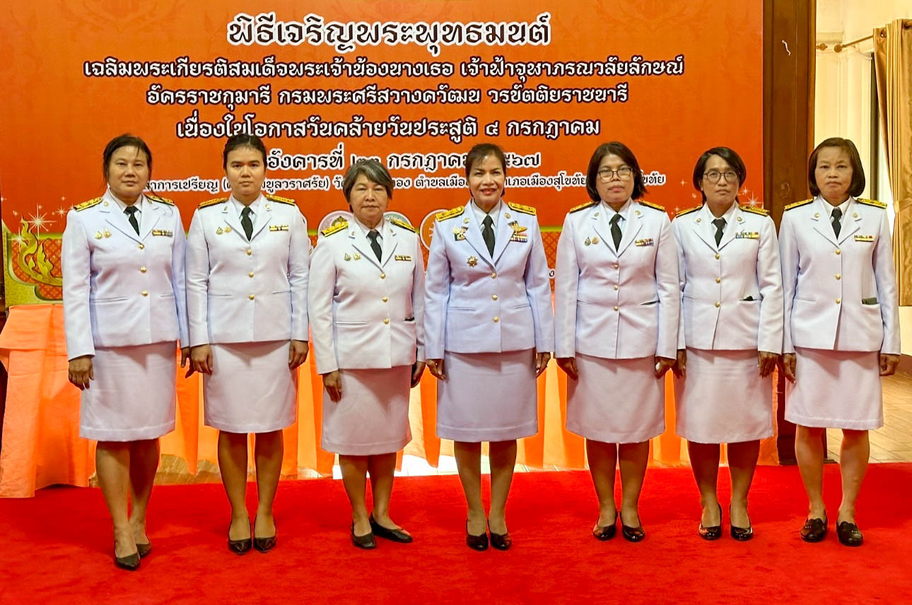 นายสุดเขต สวยสม ผู้อำนวยการสำนักงานเขตพื้นที่การศึกษามัธยมศึกษาสุโขทัย มอบหมายให้กลุ่มนิเทศ ติดตาม และประเมินผล เข้าร่วมพิธีพิธีเจริญพระพุทธมนต์เฉลิมพระเกียรติสมเด็จพระเจ้าน้องนางเธอเจ้าฟ้าจุฬาภรณวลัยลักษณ์อัครราชกุมารี กรมพระศรีสวางควัฒนวรขัตติยราชนารี เนื่องในโอกาสวันคล้ายวันประสูติ 4 กรกฎาคม ณ ศาลาการเปรียญ วัดตระพังทอง ตำบลเมืองเก่า อำเภอเมือง จังหวัดสุโขทัย (วันที่ 23 กรกฎาคม 2567)