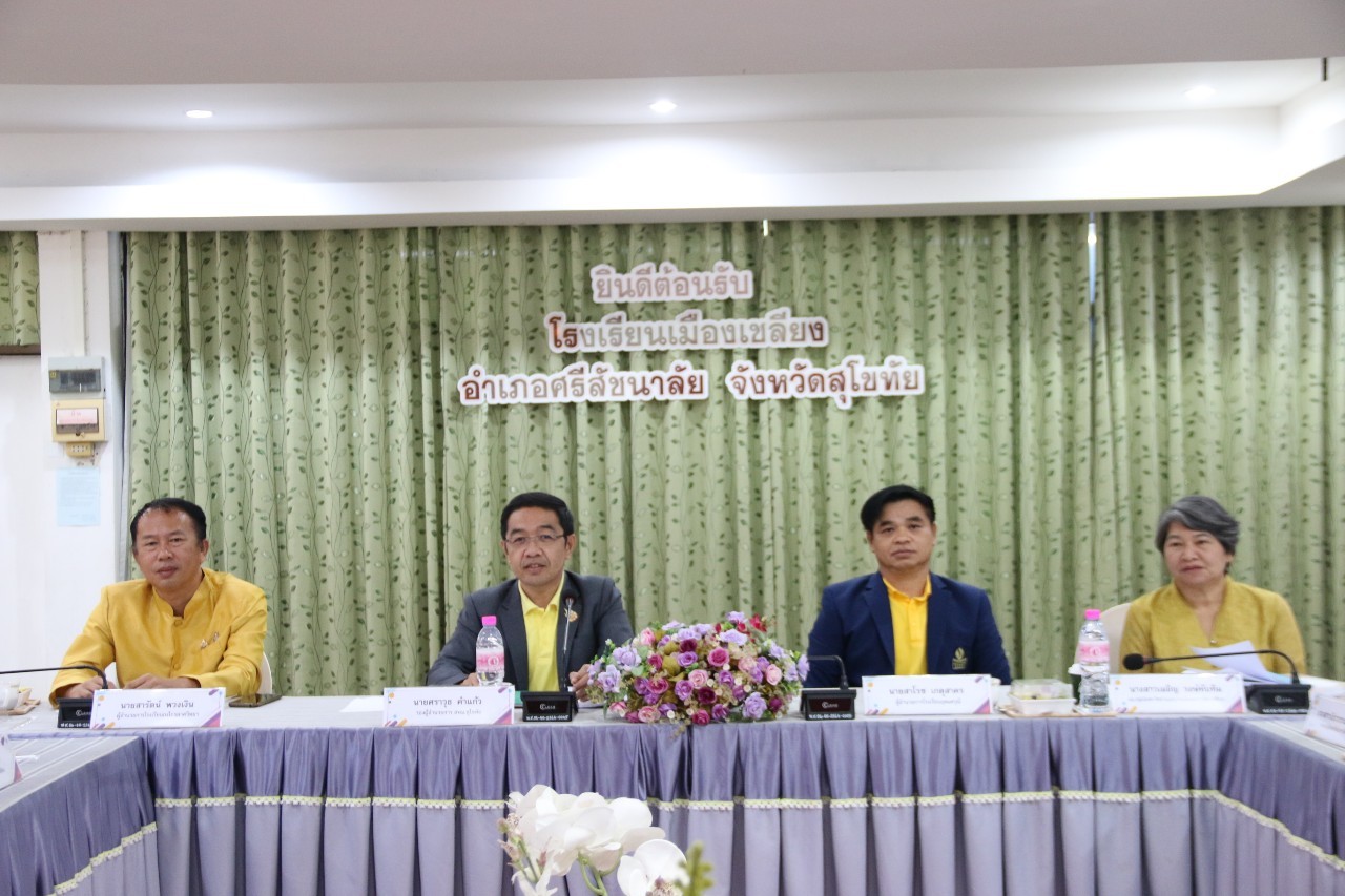 นายสุดเขต สวยสม ผู้อำนวยการสำนักงานเขตพื้นที่การศึกษามัธยมศึกษาสุโขทัย มอบหมายให้นายศราวุธ คำแก้ว รองผู้อำนวยการสำนักงานเขตพื้นที่การศึกษามัธยมศึกษาสุโขทัย เป็นประธานคณะกรรมการคัดเลือกสถานศึกษารับรางวัลระบบการดูแลช่วยเหลือนักเรียน ประจำปี 2567 ระดับสำนักงานเขตพื้นที่การศึกษา พร้อมด้วยคณะกรรมการฯ ลงพื้นที่ประเมินสถานศึกษา ที่ส่งผลงานเข้ารับการคัดเลือกสถานศึกษารับรางวัลระบบการดูแลช่วยเหลือนักเรียน ประจำปี 2567 ระดับสำนักงานเขตพื้นที่การศึกษา เชิงประจักษ์ ณ โรงเรียนเมืองเชลียง (วันที่ 25 กรกฎาคม 2567)