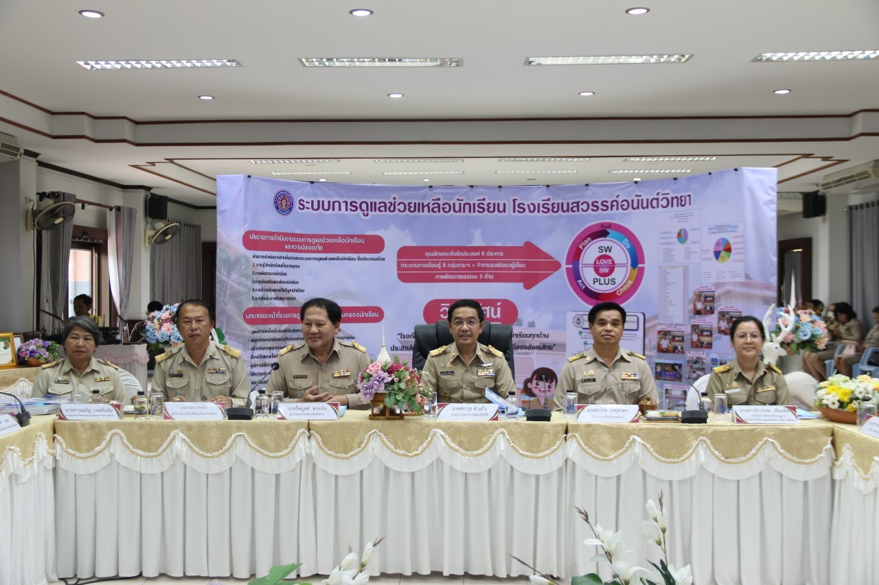 นายสุดเขต สวยสม ผู้อำนวยการสำนักงานเขตพื้นที่การศึกษามัธยมศึกษาสุโขทัย มอบหมายให้ นายศราวุธ คำแก้ว รองผู้อำนวยการสำนักงานเขตพื้นที่การศึกษามัธยมศึกษาสุโขทัย เป็นประธาน คณะกรรมการคัดเลือกสถานศึกษารับรางวัลระบบการดูแลช่วยเหลือนักเรียน ประจำปี 2567 ระดับสำนักงานเขตพื้นที่การศึกษา พร้อมด้วยคณะกรรมการฯ ลงพื้นที่ประเมินสถานศึกษา ที่ส่งผลงานเข้ารับการคัดเลือกสถานศึกษารับรางวัลระบบการดูแลช่วยเหลือนักเรียน ประจำปี 2567 ระดับสำนักงานเขตพื้นที่การศึกษา เชิงประจักษ์ ณ โรงเรียนสวรรค์อนันต์วิทยา (วันที่ 30 กรกฎาคม 2567)