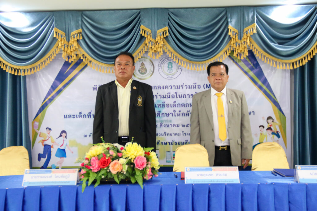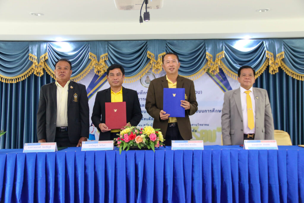 นายสุดเขต สวยสม ผู้อำนวยการสำนักงานเขตพื้นที่การศึกษามัธยมศึกษาสุโขทัย พร้อมด้วย นายศราวุธ คำแก้ว นายวัลลภ เอี่ยมมะ รองผู้อำนวยการสำนักงานเขตพื้นที่การศึกษามัธยมศึกษาสุโขทัย ร่วมพิธีลงนาม เป็นพยานพิธีลงนามบันทึกข้อตกลงระหว่างสำนักงานส่งเสริมการเรียนรู้จังหวัดสุโขทัยและสำนักงานเขตพื้นที่การศึกษามัธยมศึกษาสุโขทัย และ บันทึกข้อตกลงระหว่างผู้อำนวยการศูนย์ส่งสริมการเรียนรู้ระดับอำเภอ 9 อำเภอและผู้อำนวยการโรงเรียนประจำอำเภอและโรงเรียนคุณภาพ (10 โรงเรียน) โดยมีนายรามณรงค์ โตนชัยภูมิ ผู้อำนวยการสำนักงานส่งเสริมการเรียนรู้จังหวัดสุโขทัย และนายวีระ พุ่มไม้ รองผู้อำนวยการสำนักงานเขตพื้นที่การศึกษาประถมศึกษาสุโขทัย เขต 1 ร่วมเป็นเกียรติเป็นพยานในพิธีดังกล่าว ณ ห้องประชุมกีรติกาล 40 สมัย บ้านสวนวิทยาคม โรงเรียนบ้านสวนวิทยาคม (วันที่ 8 สิงหาคม 2567)