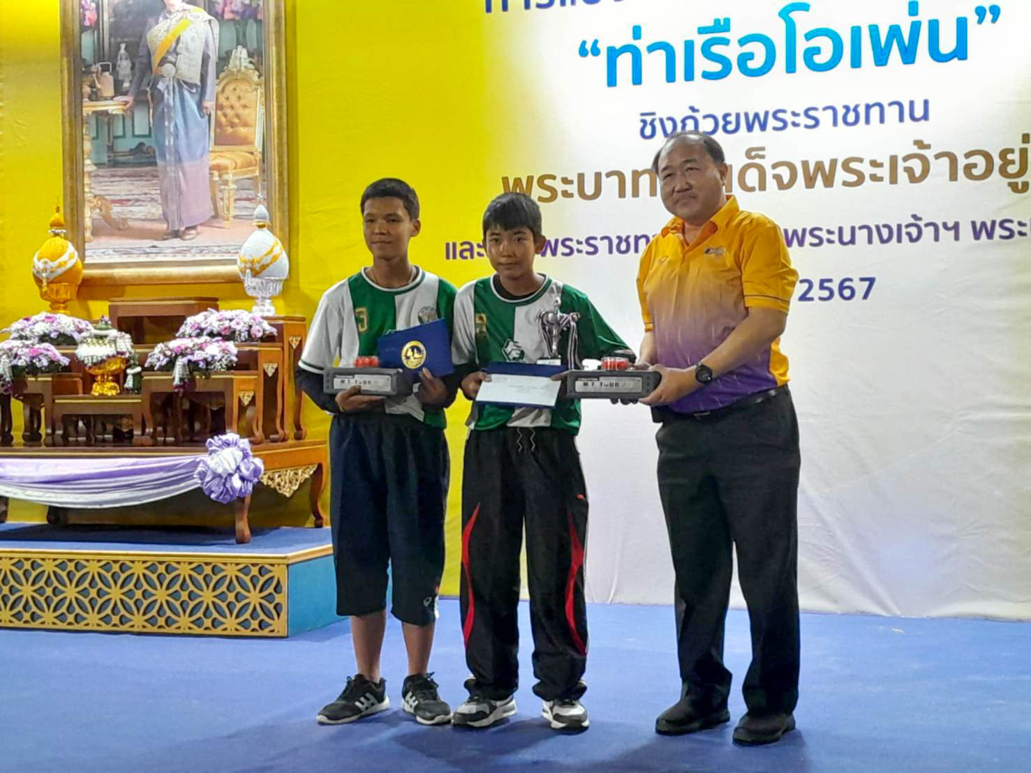 สำนักงานเขตพื้นที่การศึกษามัธยมศึกษาสุโขทัย ขอแสดงความยินดีกับเด็กชายจารุเดช แก้วนาค และเด็กชายศิริพงษ์ แย้มหว่าง นักเรียนชั้น ม.1/4 โรงเรียนศรีสำโรงชนูปถัมภ์ ได้รับถ้วยรางวัล รองชนะเลิศอันดับ 2 ยุวชน 2 คน อายุไม่เกิน 13 ปี จากการแข่งขันกีฬาเปตองการกุศล “ท่าเรือโอเพ่น” ชิงถ้วยพระราชทาน พระบาทสมเด็จพระเจ้าอยู่หัว และถ้วยพระราชทานสมเด็จพระนางเจ้าฯ พระบรมราชินี ประจำปี 2567 ณ สนามกีฬาเปตองการท่าเรือ แห่งประเทศไทย ผู้ฝึกสอนนายธีระพงศ์ ประดิษฐ์รัตนะ นายศศิพงศ์ วรรณา