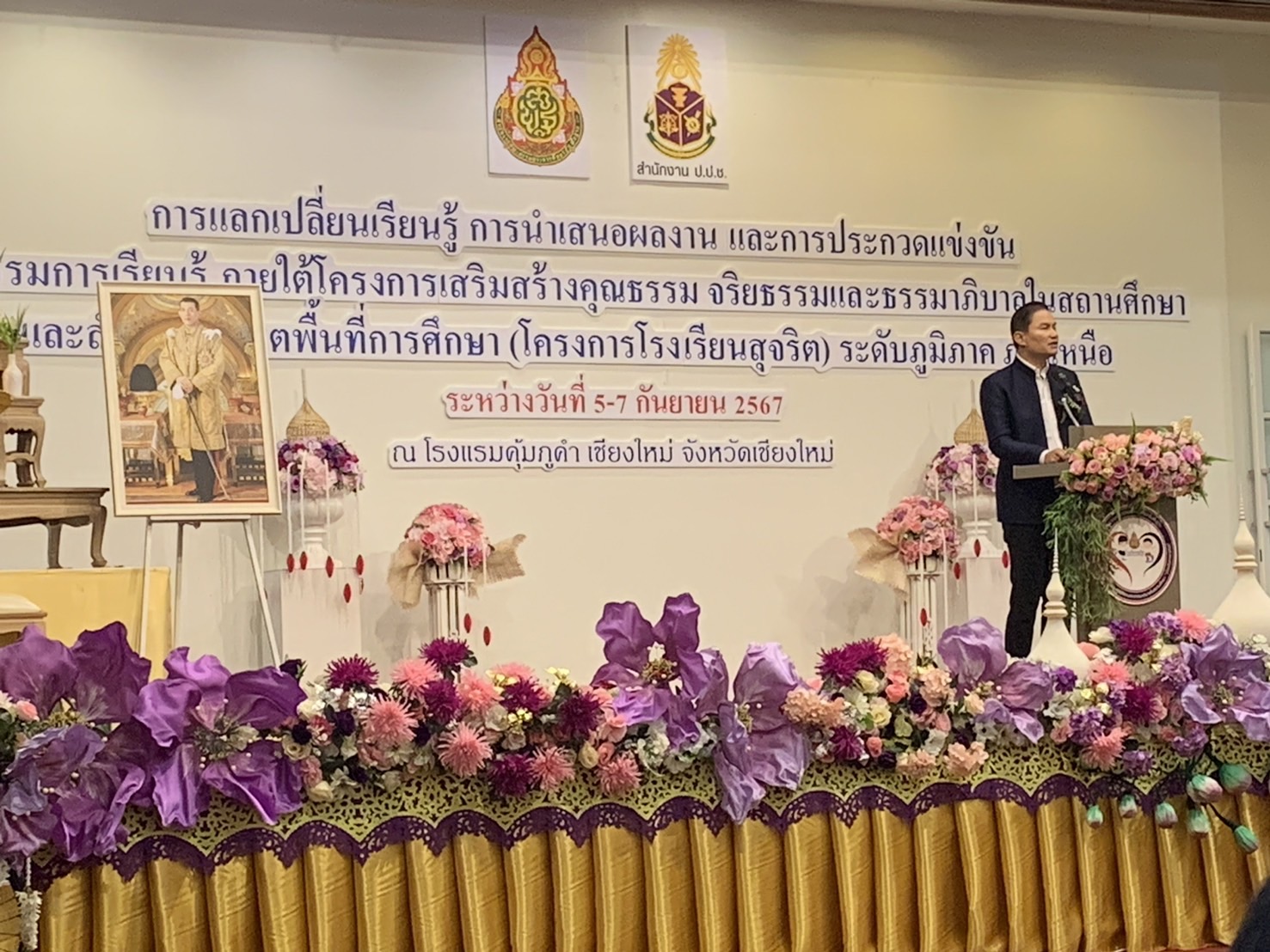 นางสาวจีราภรณ์ รอดเชื้อ ศึกษานิเทศก์ชำนาญการพิเศษ เป็นคณะกรรมการตัดสินภาคเหนือ กิจกรรมบริษัทสร้างการดี ระดับประถมศึกษา ในงานการแลกเปลี่ยนเรียนรู้การนำเสนอผลงาน และการประกวดแข่งขันกิจกรรมการเรียนรู้ ภายใต้โครงการเสริมสร้างคุณธรรม จริยธรรม และธรรมาภิบาลในสถานศึกษา และสำนักงานเขตพื้นที่การศึกษา (โครงการโรงเรียนสุจริต) ระดับภูมิภาค ภาคเหนือ ระหว่างวันที่ 5 – 7 กันยายน 2567 ณ โรงเรียนคุ้มภูคำเชียงใหม่ จังหวัดเชียงใหม่ (วันที่ 7 กันยายน 2567)