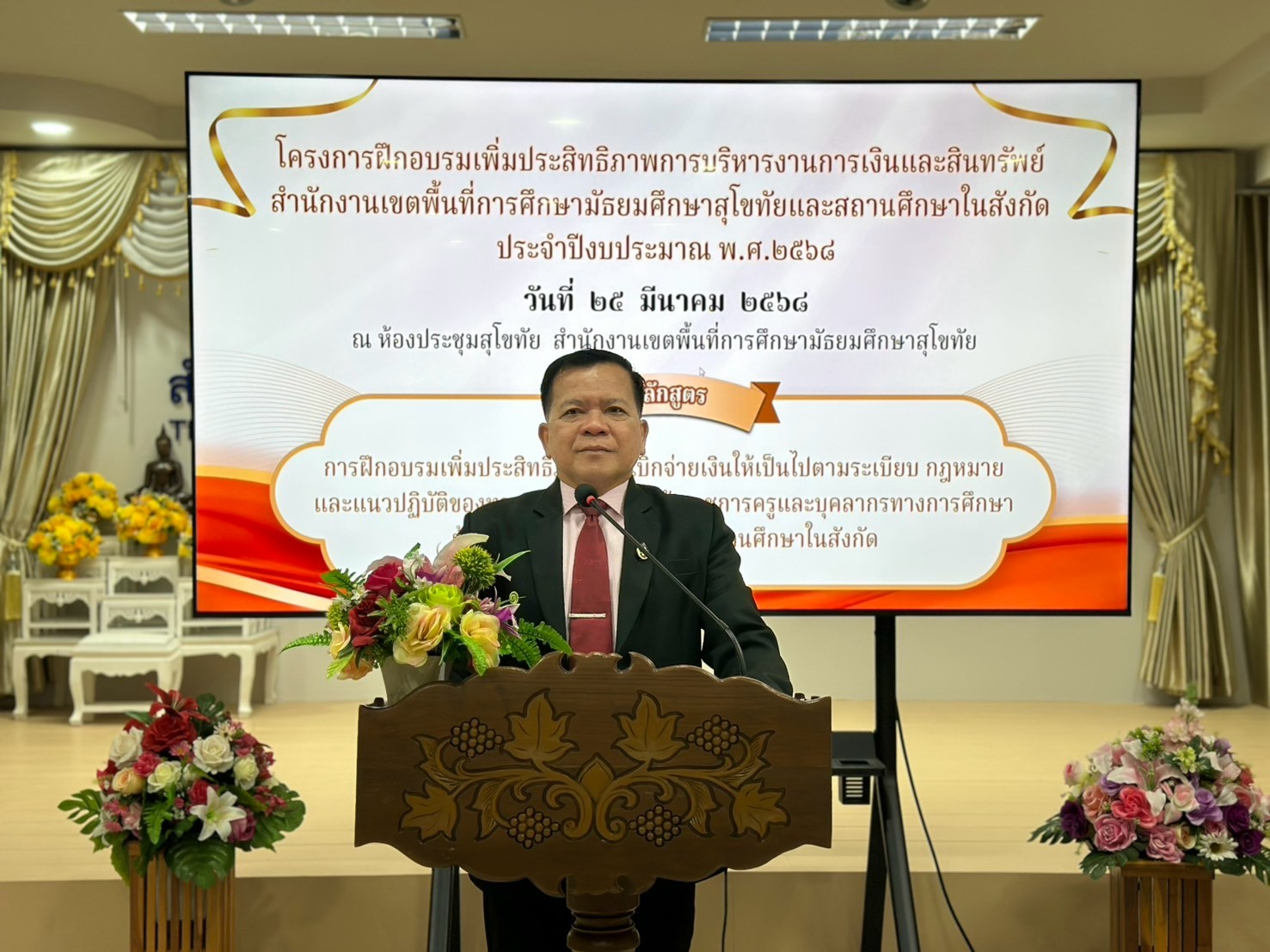 กลุ่มบริหารงานการเงิน สพม.สุโขทัย ได้จัดโครงการฝึกอบรม “การเพิ่มประสิทธิภาพการบริหารงานการเงินและสินทรัพย์” ให้แก่ข้าราชการครูและบุคลากรทางการศึกษาผู้ปฏิบัติงานด้านการเงินของสถานศึกษา เพื่อพัฒนาความรู้และทักษะที่จำเป็นในการบริหารจัดการงบประมาณ การเงิน และสินทรัพย์ของสถานศึกษาให้เป็นไปตามหลักธรรมาภิบาล ในการนี้ นายสุดเขต สวยสม ผอ.สพม.สุโขทัย ให้เกียรติเป็นประธานในพิธีเปิดโครงการ พร้อมบรรยายพิเศษเกี่ยวกับแนวทางการบริหารจัดการด้านการเงินและสินทรัพย์ของสถานศึกษา โดยมุ่งเน้นให้ผู้เข้ารับการอบรมมีความเข้าใจเกี่ยวกับหลักเกณฑ์และแนวปฏิบัติที่ถูกต้องตามระเบียบราชการ เพื่อส่งเสริมประสิทธิภาพ ความโปร่งใส และมาตรฐานทางการเงินของภาครัฐ นอกจากนี้ยังได้รับเกียรติจาก นายศราวุธ คำแก้ว รองผอ.สพม.สุโขทัย พร้อมด้วยเจ้าหน้าที่การเงินของสำนักงานเขตฯ ตลอดจนข้าราชการครูและบุคลากรทางการศึกษาผู้ปฏิบัติงานด้านการเงินของสถานศึกษาเข้าร่วม โดยมีการถ่ายทอดองค์ความรู้ในประเด็นสำคัญ เพื่อเสริมสร้างศักยภาพของบุคลากรทางการศึกษาให้สามารถบริหารจัดการงานด้านการเงินและสินทรัพย์ได้อย่างถูกต้องอันจะนำไปสู่การพัฒนาคุณภาพการบริหารจัดการศึกษาในระดับสถานศึกษาต่อไป