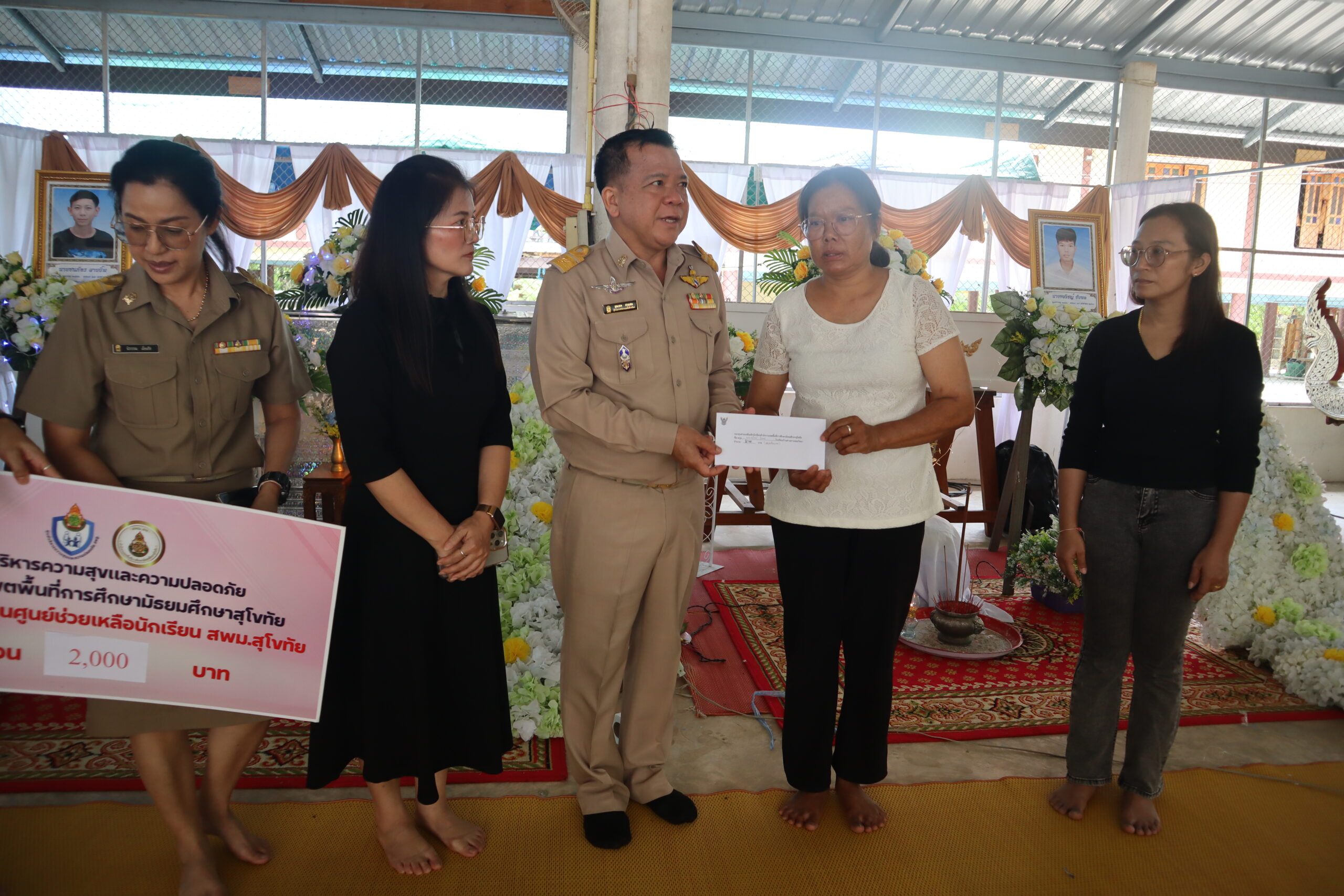 แก่ผู้ปกครองของนักเรียนโรงเรียนบ้านด่านลานหอยวิทยาซึ่งเสียชีวิตจากอุบัติเหตุรถยนต์ชนท้ายรถจักรยานยนต์ พร้อมทั้งเข้าเยี่ยมและให้กำลังใจนักเรียนที่ได้รับบาดเจ็บสาหัสจากอุบัติเหตุดังกล่าว ณ โรงพยาบาลสุโขทัย (วันที่ 29 เมษายน 2568)